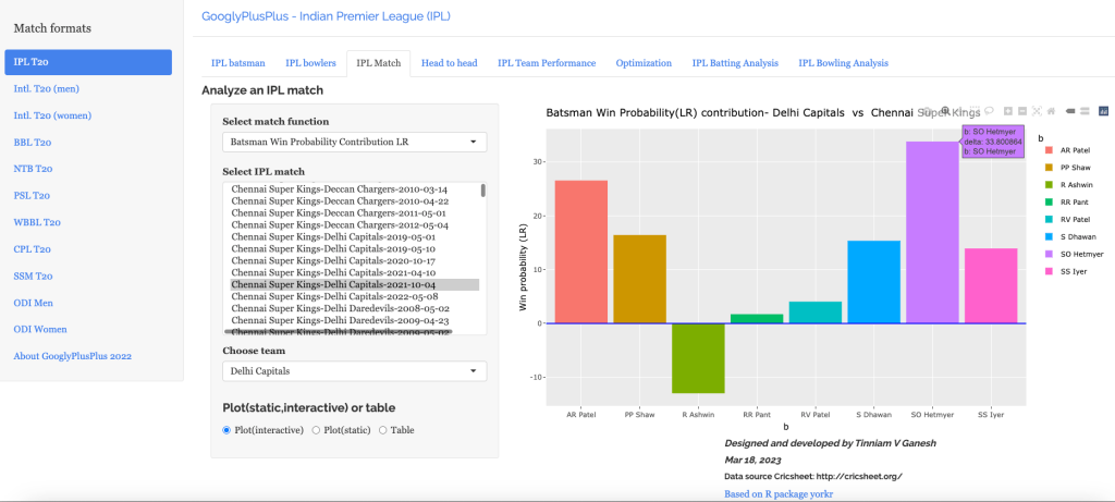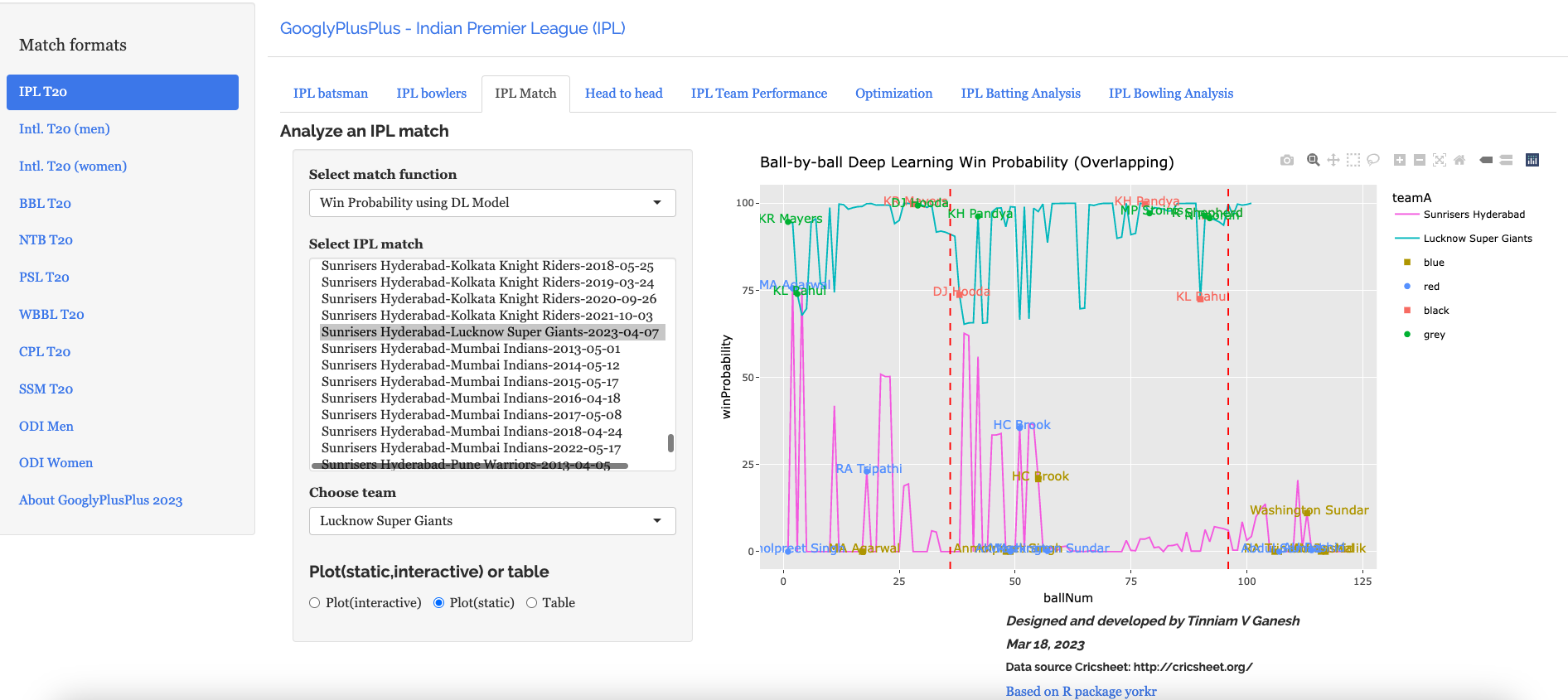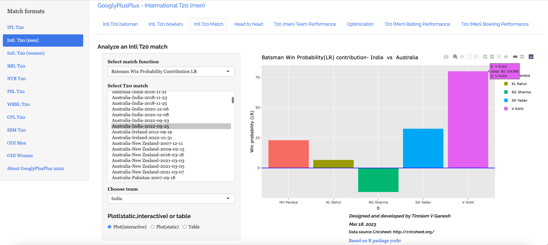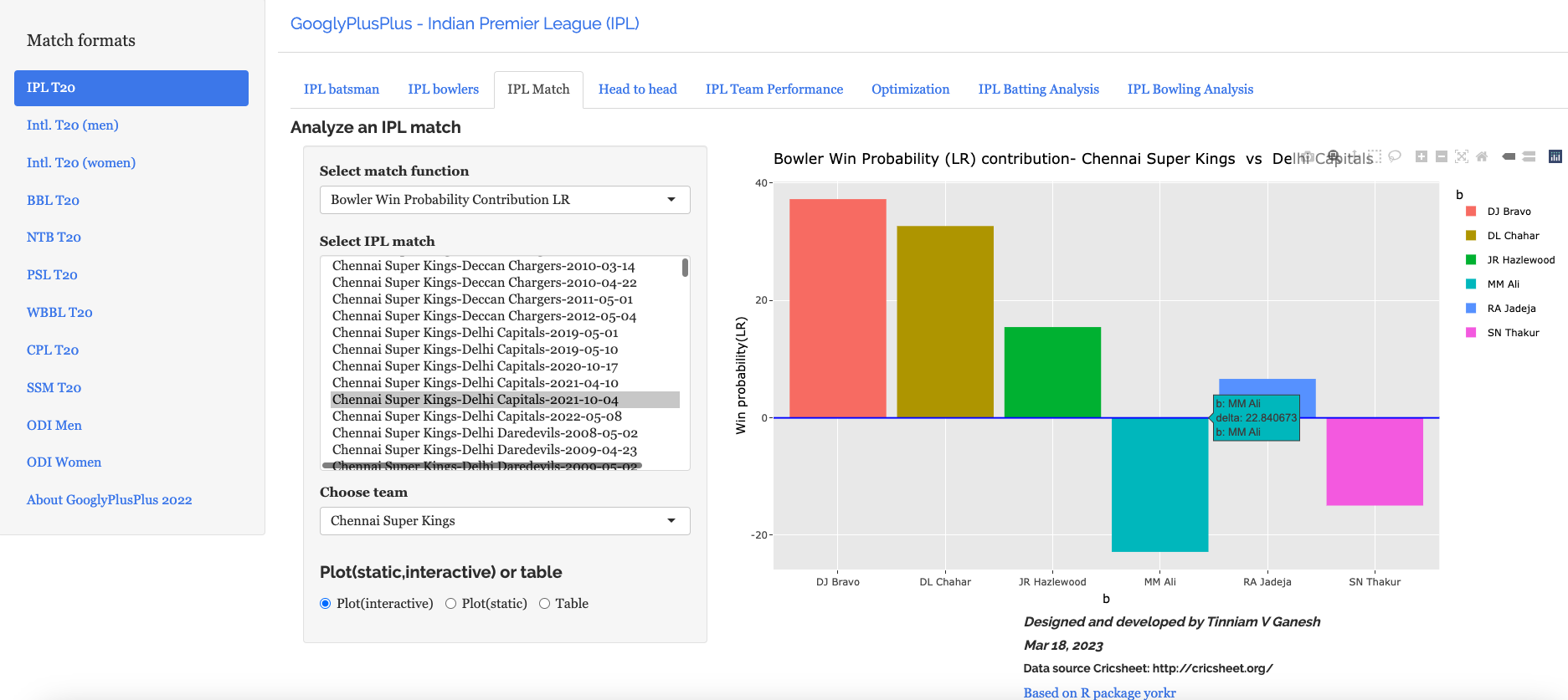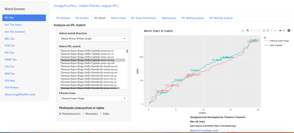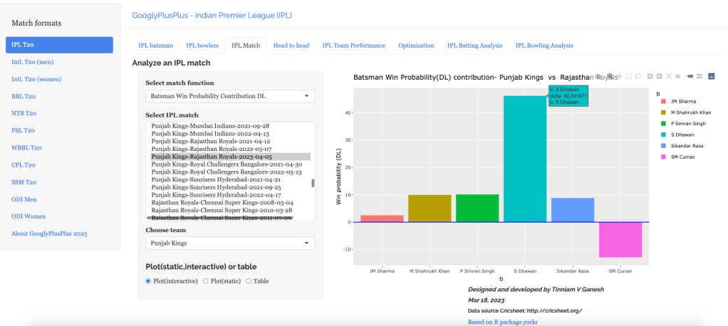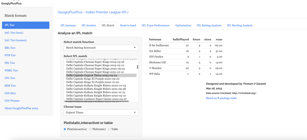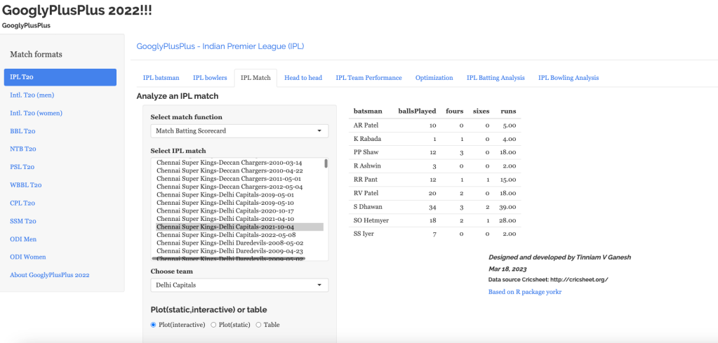 Note: The data for GooglyPlusPlus comes from Cricsheet and the Shiny app is based on my R package yorkr