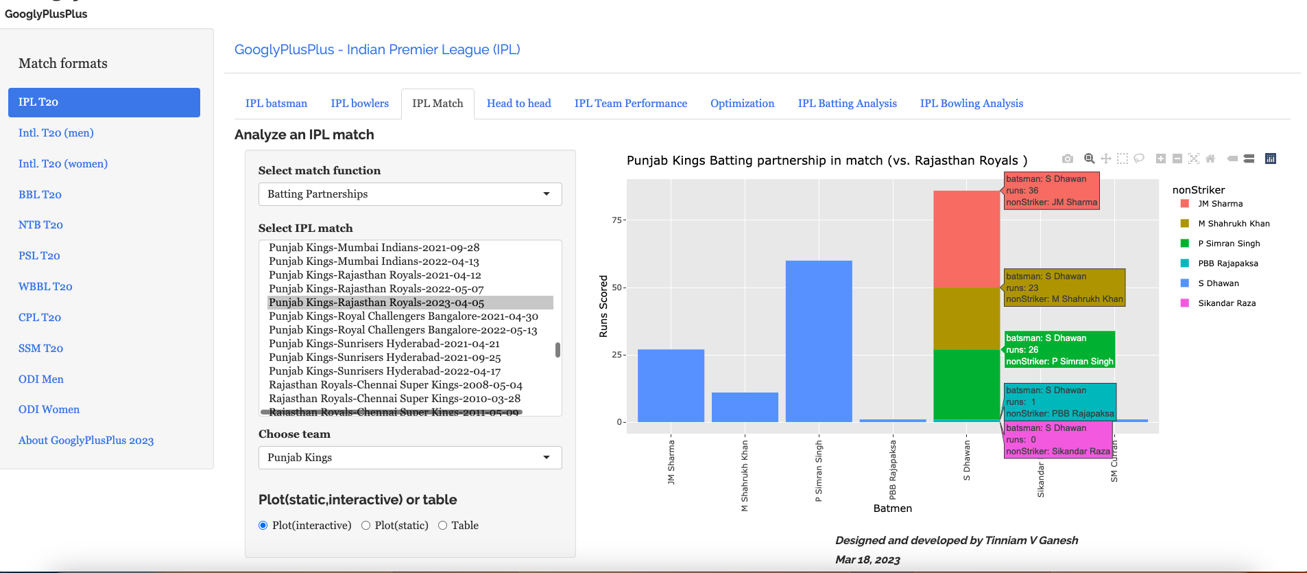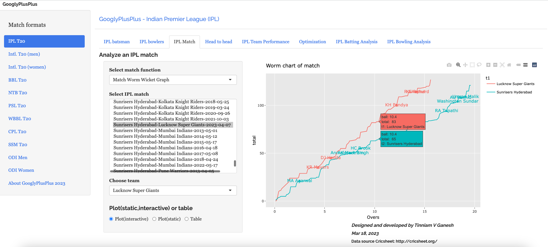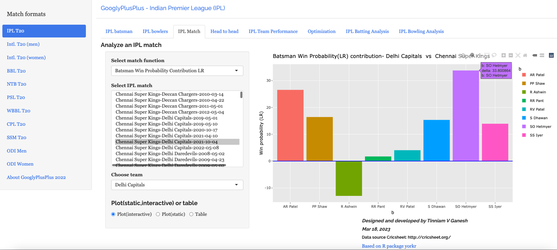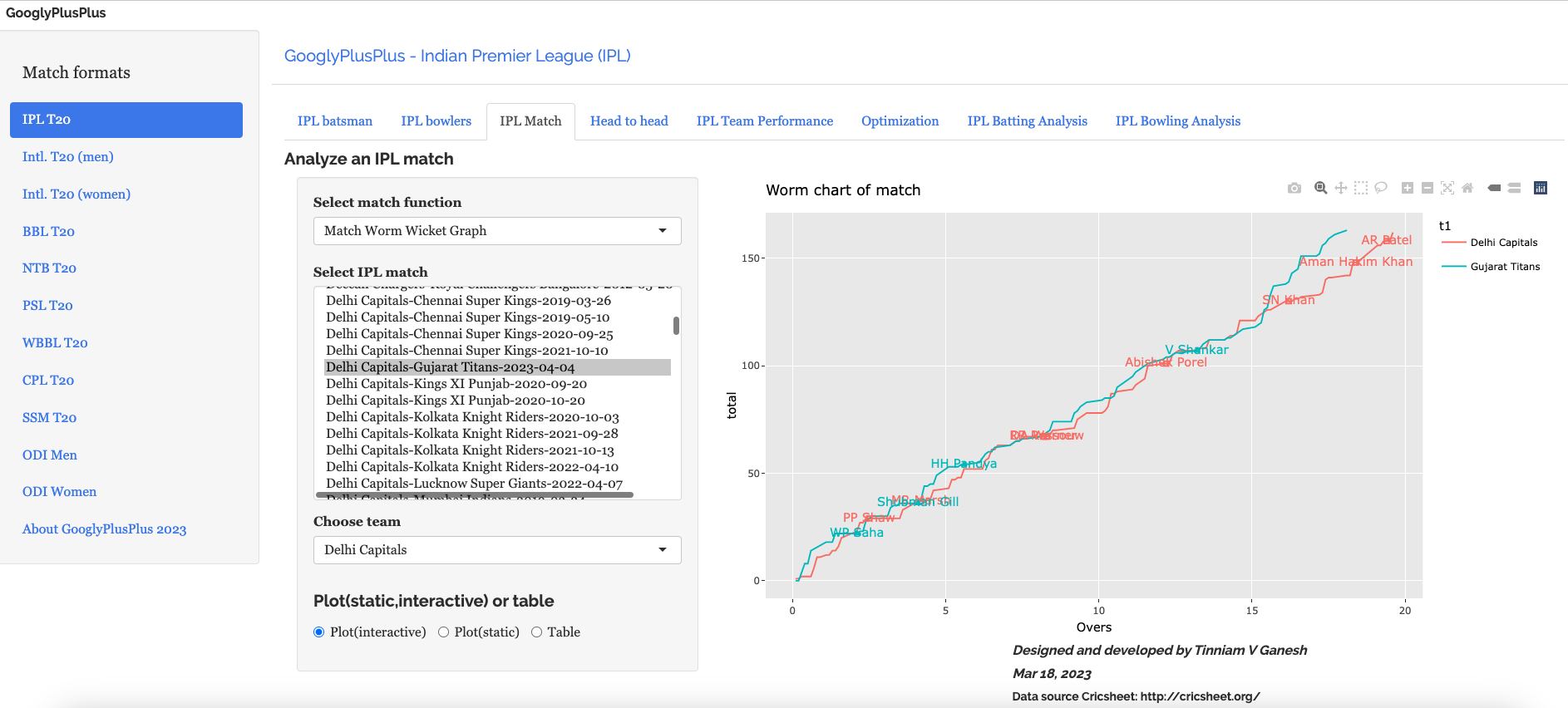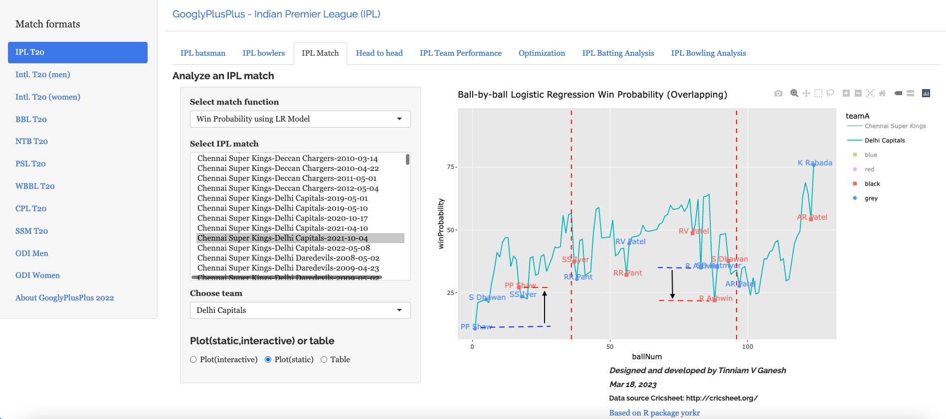 Note: The data for GooglyPlusPlus comes from Cricsheet and the Shiny app is based on my R package yorkr