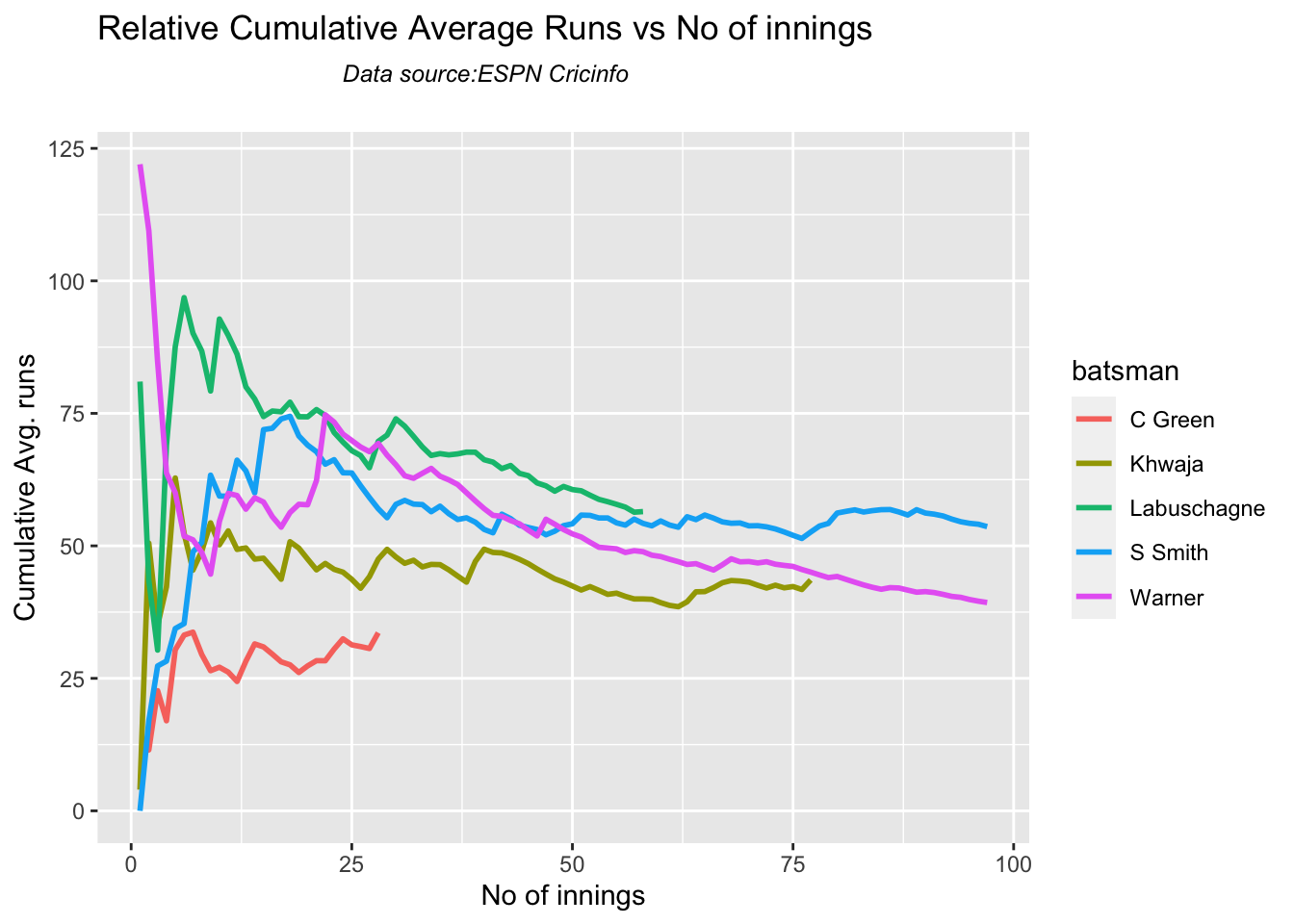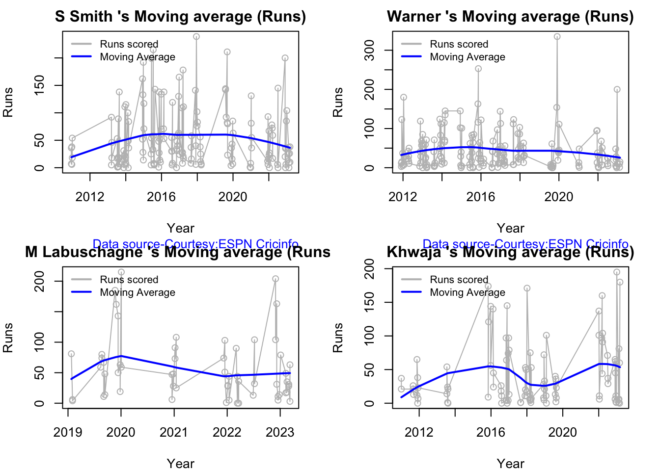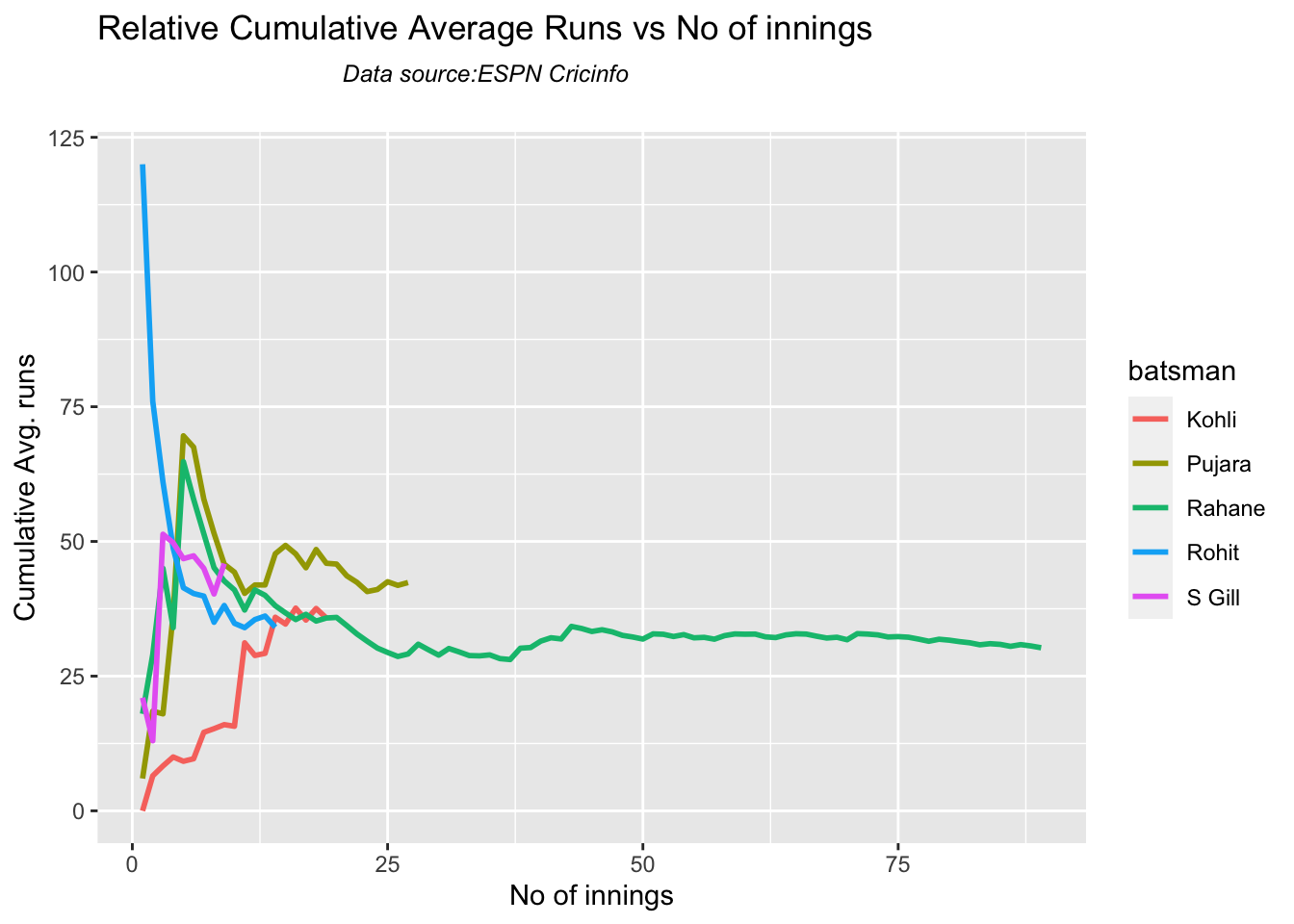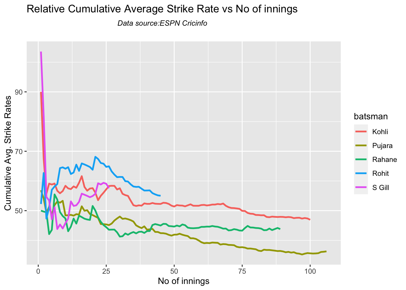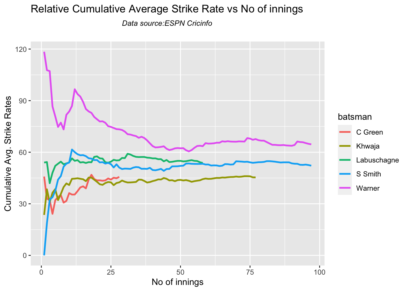 Finally plotting the Batsman’s Win Probability Contribution
