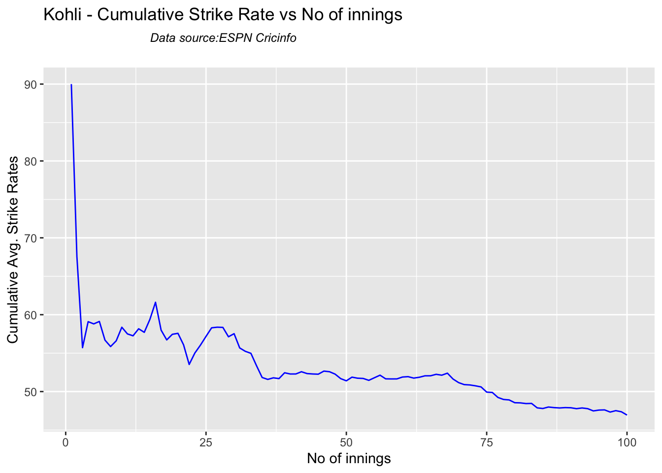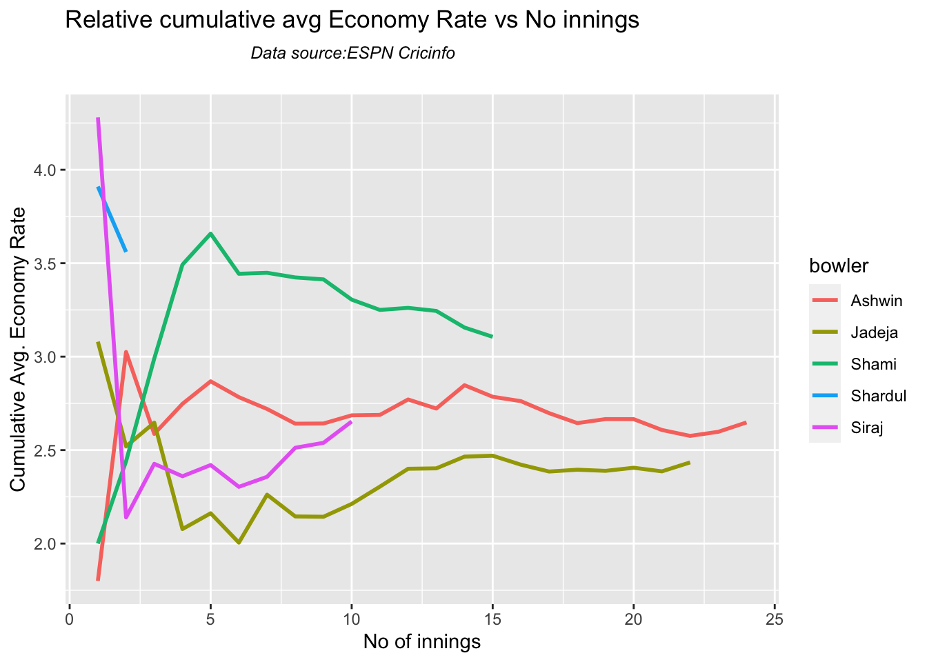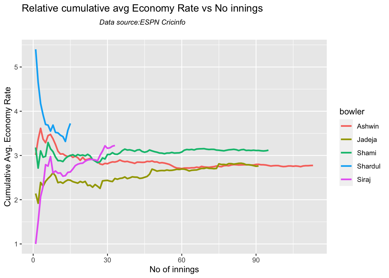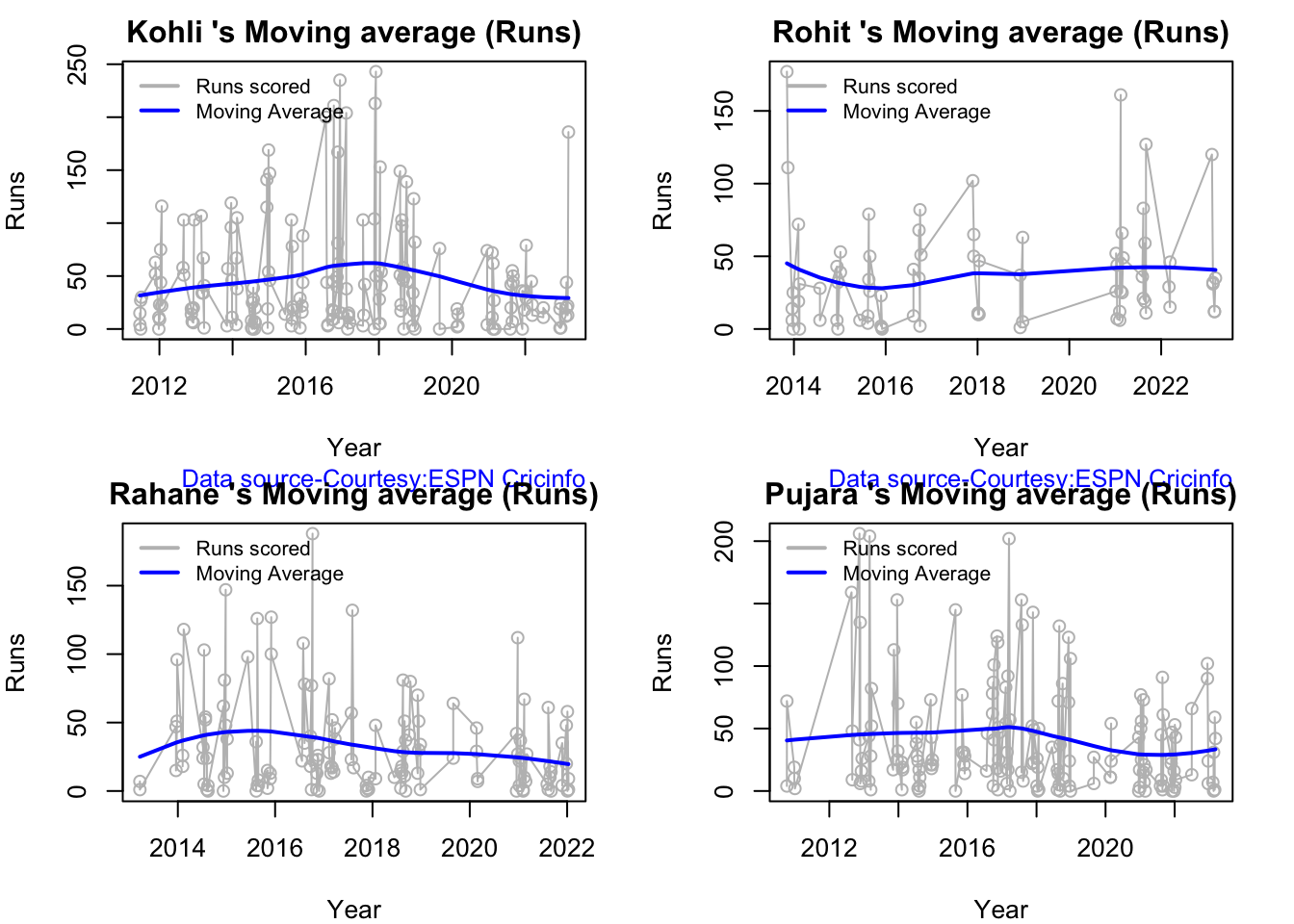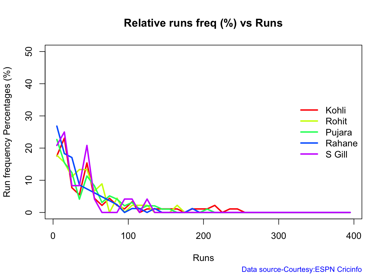 Finally plotting the Batsman’s Win Probability Contribution