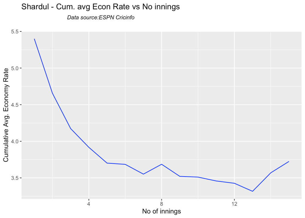 The batsman’s or bowler’s win probability contribution changes ball-by=ball. The player’s contribution is calculated as the difference in win probability when the batsman faces the 1st ball in his innings and the last ball either when is out or the innings comes to an end. If the difference is +ve the the player has had a positive impact, and likewise for negative contribution. Similarly, for a bowler, it is the win probability when he/she comes into bowl till, the last delivery he/she bowls