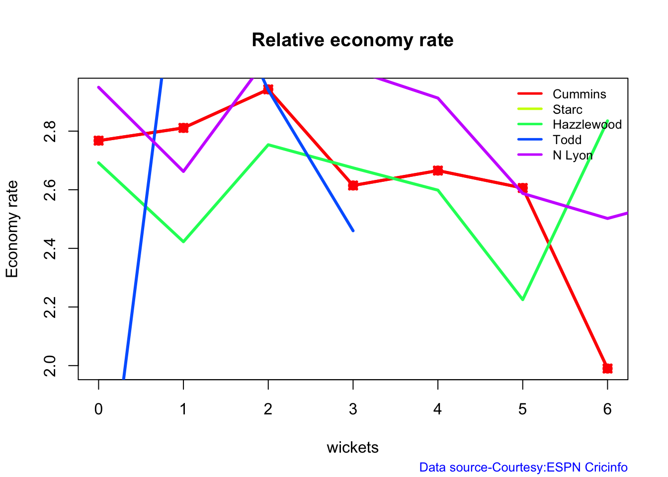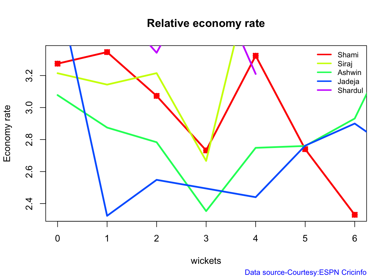 b) Wickets vs ER plot
