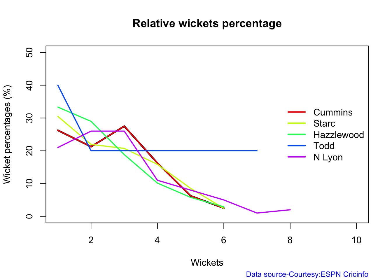 a) Worm wicket chart – Australia vs India – 25 Sep 2022