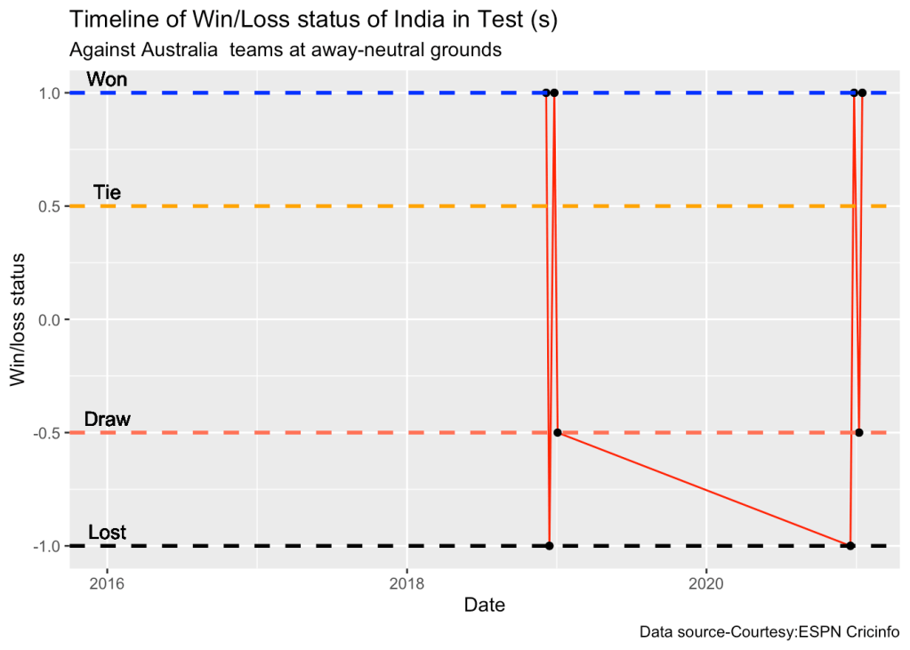 Selectively choosing the India Win Probability plot by double-clicking legend ‘India’ on the right , followed by single click of black, grey legend we have