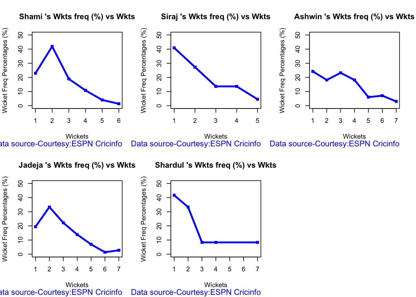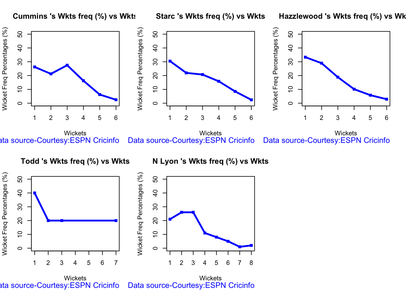 c) Wickets across 20 overs