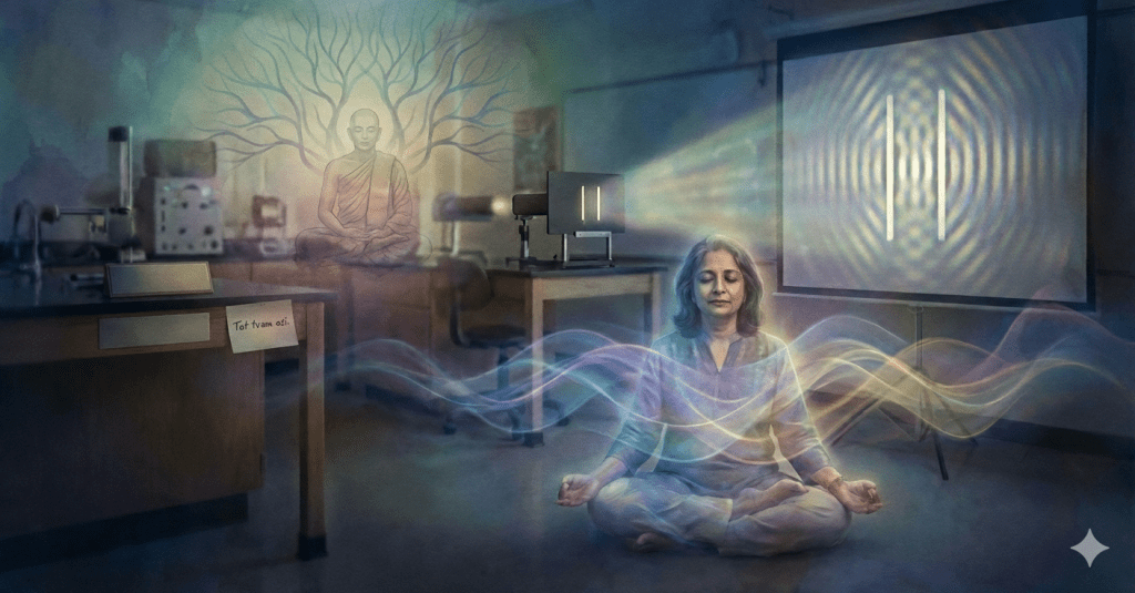 mysticism and physics were describing the same doorway, one through observation, the other through liberation.