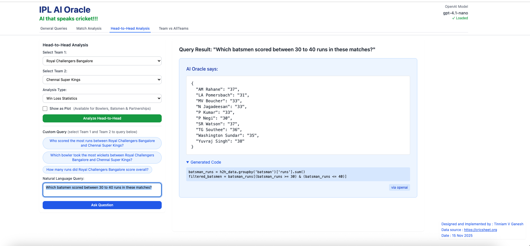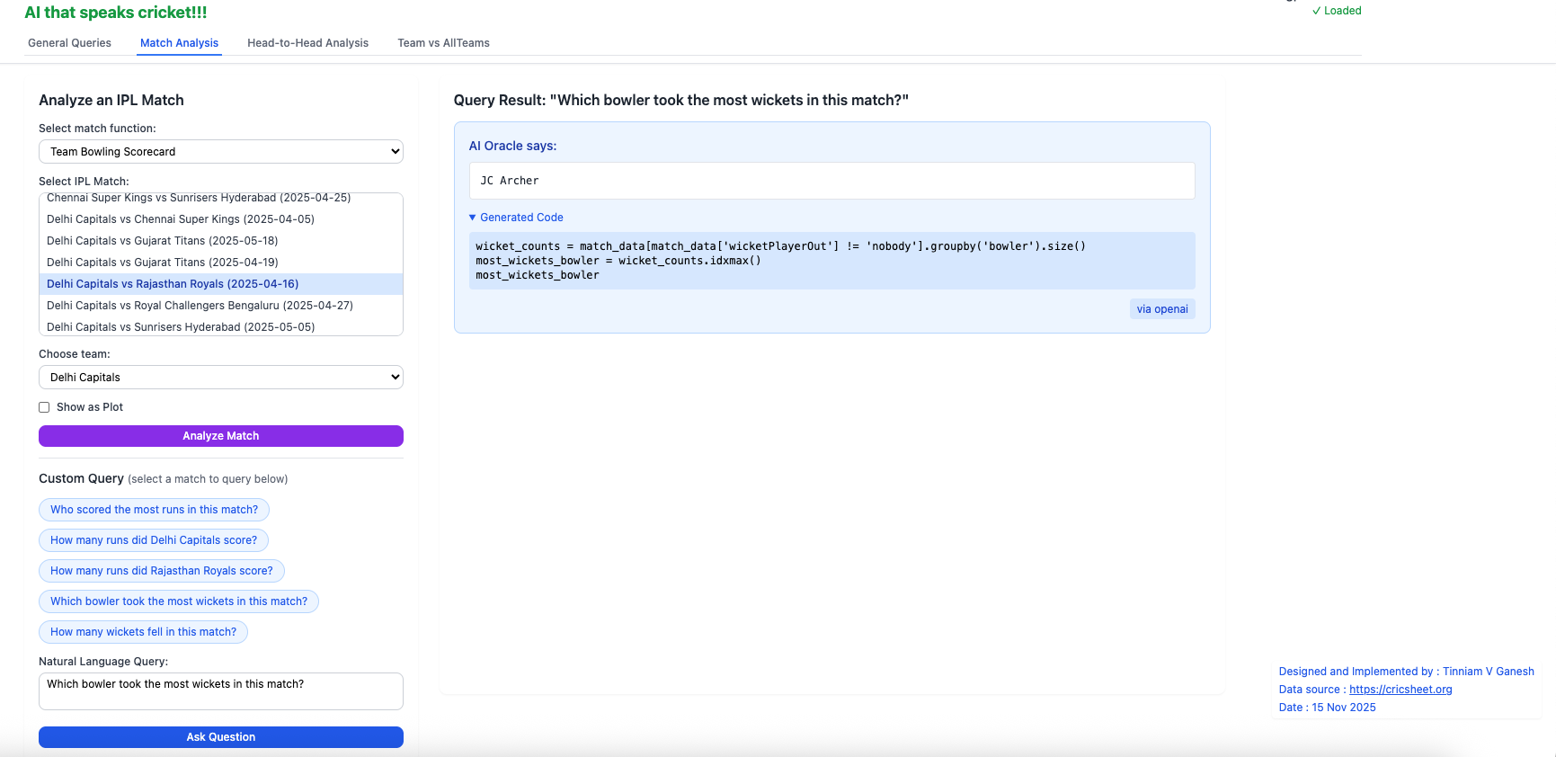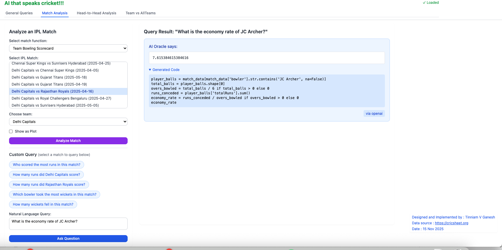 2. Introducing IPL AI Oracle: AI that speaks cricket!!!