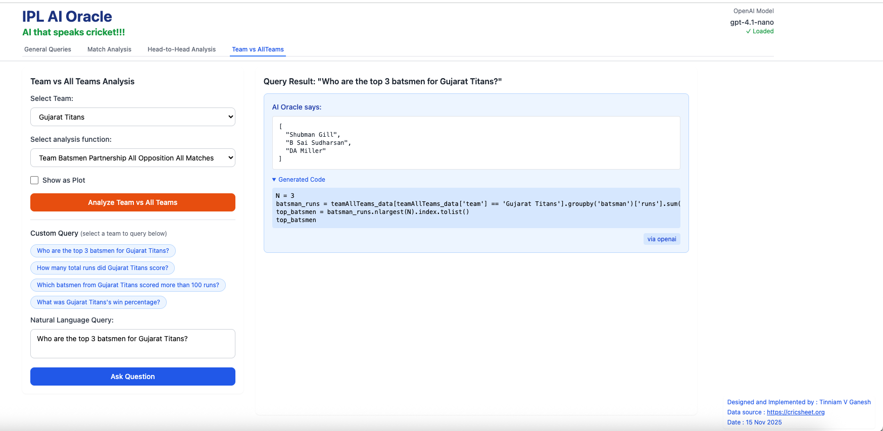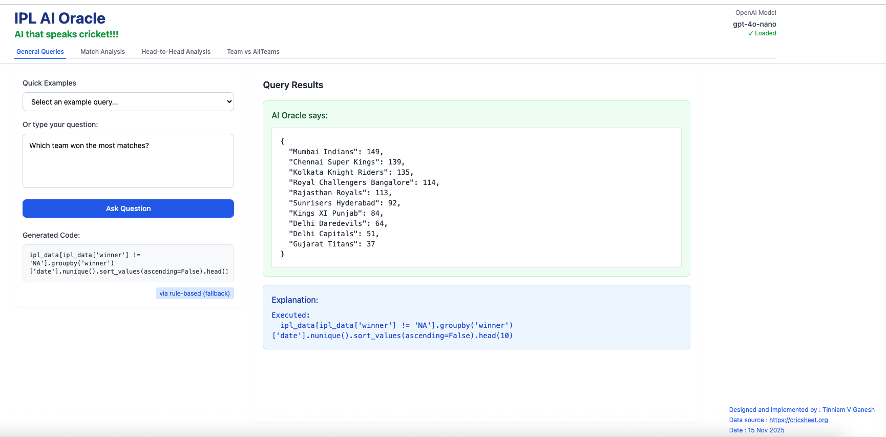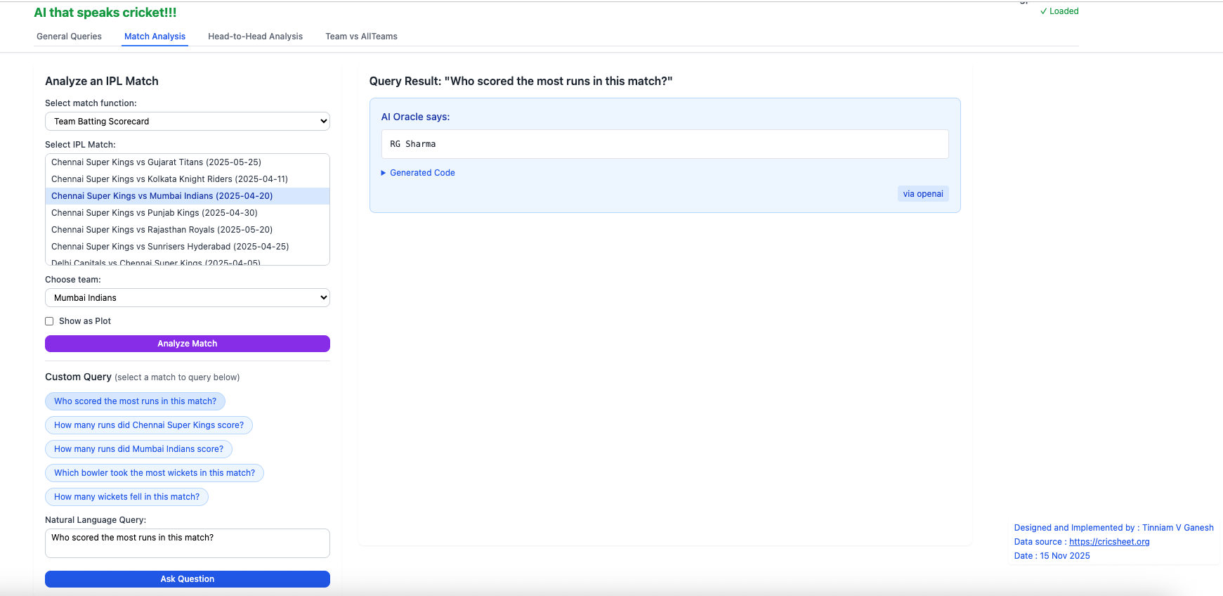 2. Introducing IPL AI Oracle: AI that speaks cricket!!!
