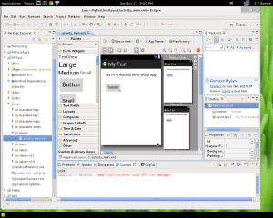 Once you have Android installed on in the plugin start Eclipse. Select File->New->Project-> Android Application Project and click next. In the Application Name enter My Test and let eclipse fill the names for Project name and Package name. Click next. Allow default values in New Android Application and Configure Launcher icon screens. In the Create Activity choose Blank Activity and choose default values for New Blank Activity and finally choose Finish.