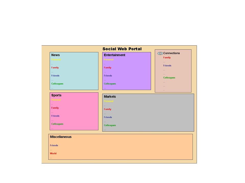 - The Social Web Portal will render content based on the statistical analysis of the collective click stream activity of a user’s family, friends, professional circle and the world at large
