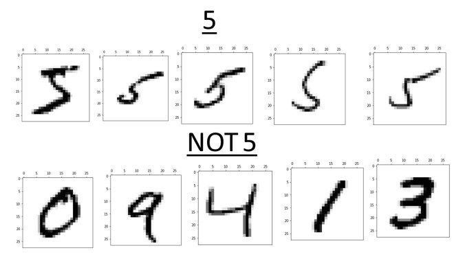 In the Python code below, I perform a simple binary classification between the handwritten digit ‘5’ and ‘not 5’ which is all other digits. I will perform the proper classification of all digits using the Softmax classifier some time later.