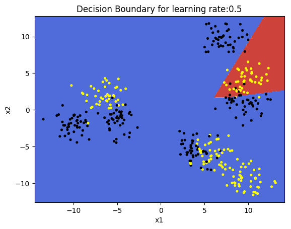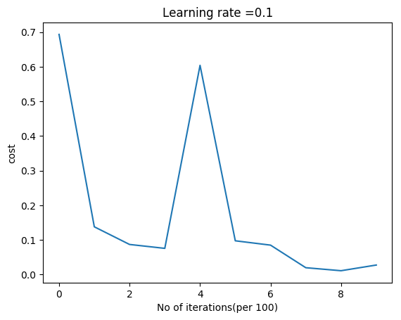 parameters = L_Layer_DeepModel(X1, Y1, layersDimensions, hiddenActivationFunc='relu', learning_rate = 0.1,num_iterations = 1000, fig="fig7.png")
