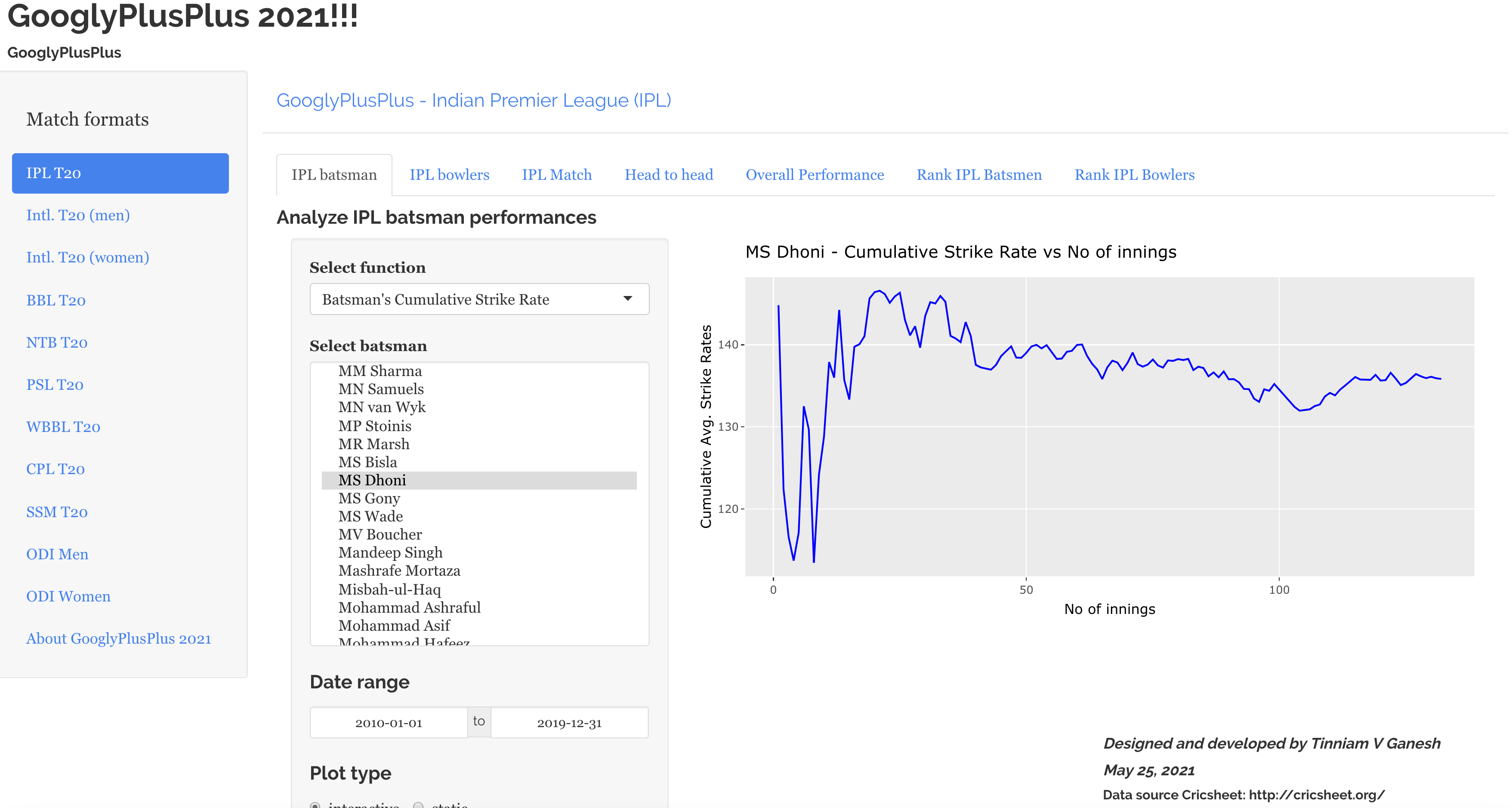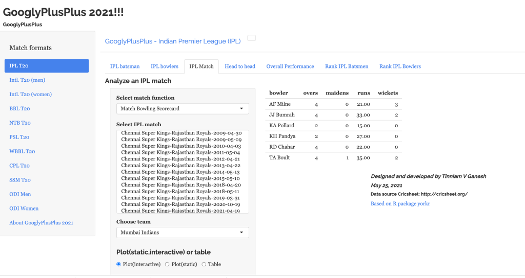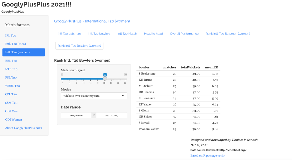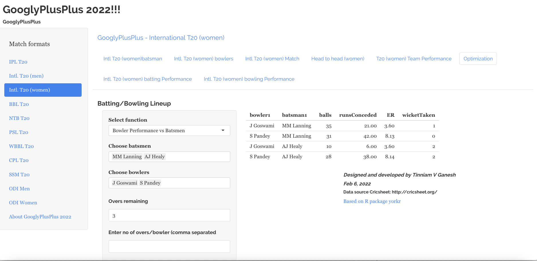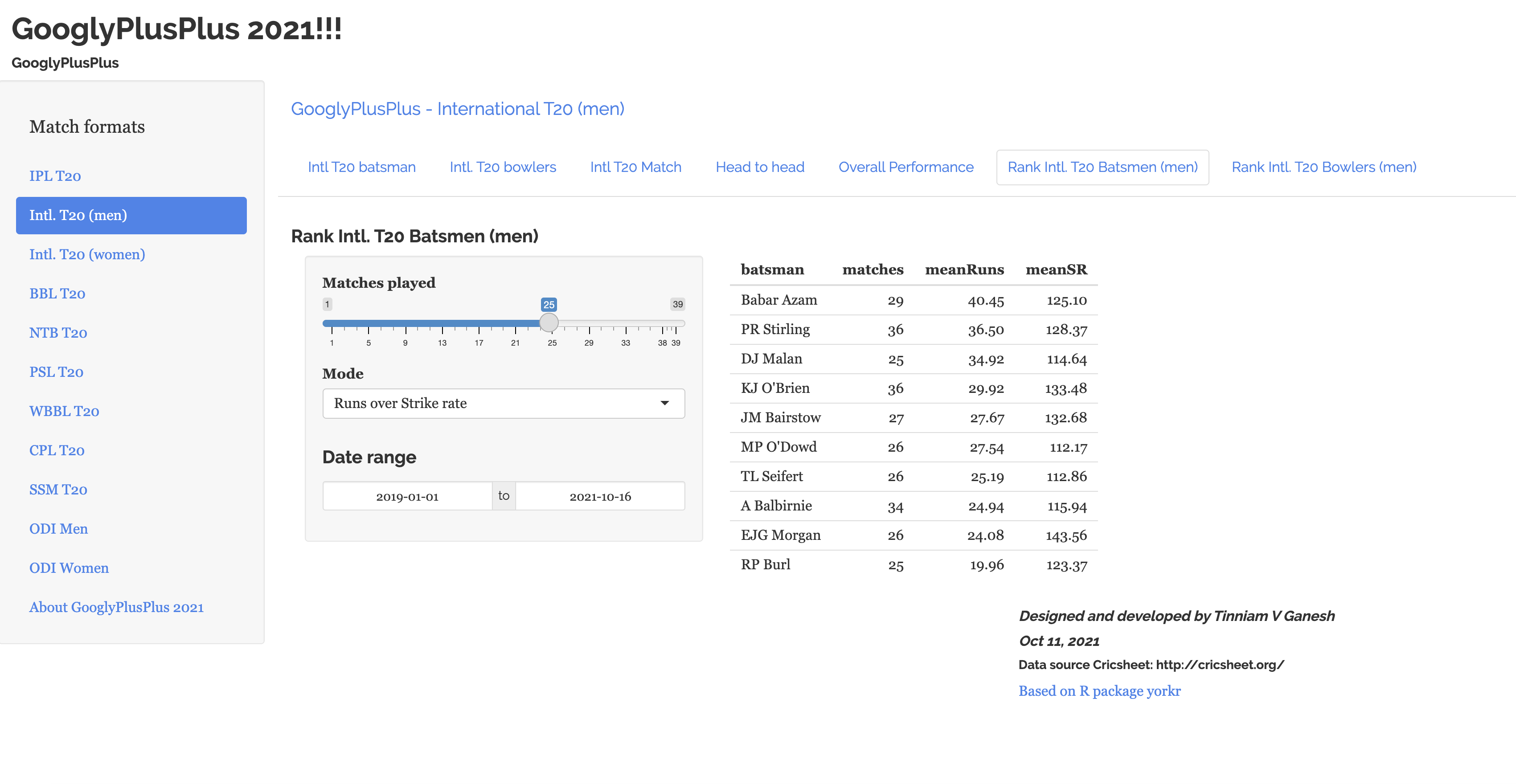 Note: The data for GooglyPlusPlus comes from Cricsheet and the Shiny app is based on my R package yorkr