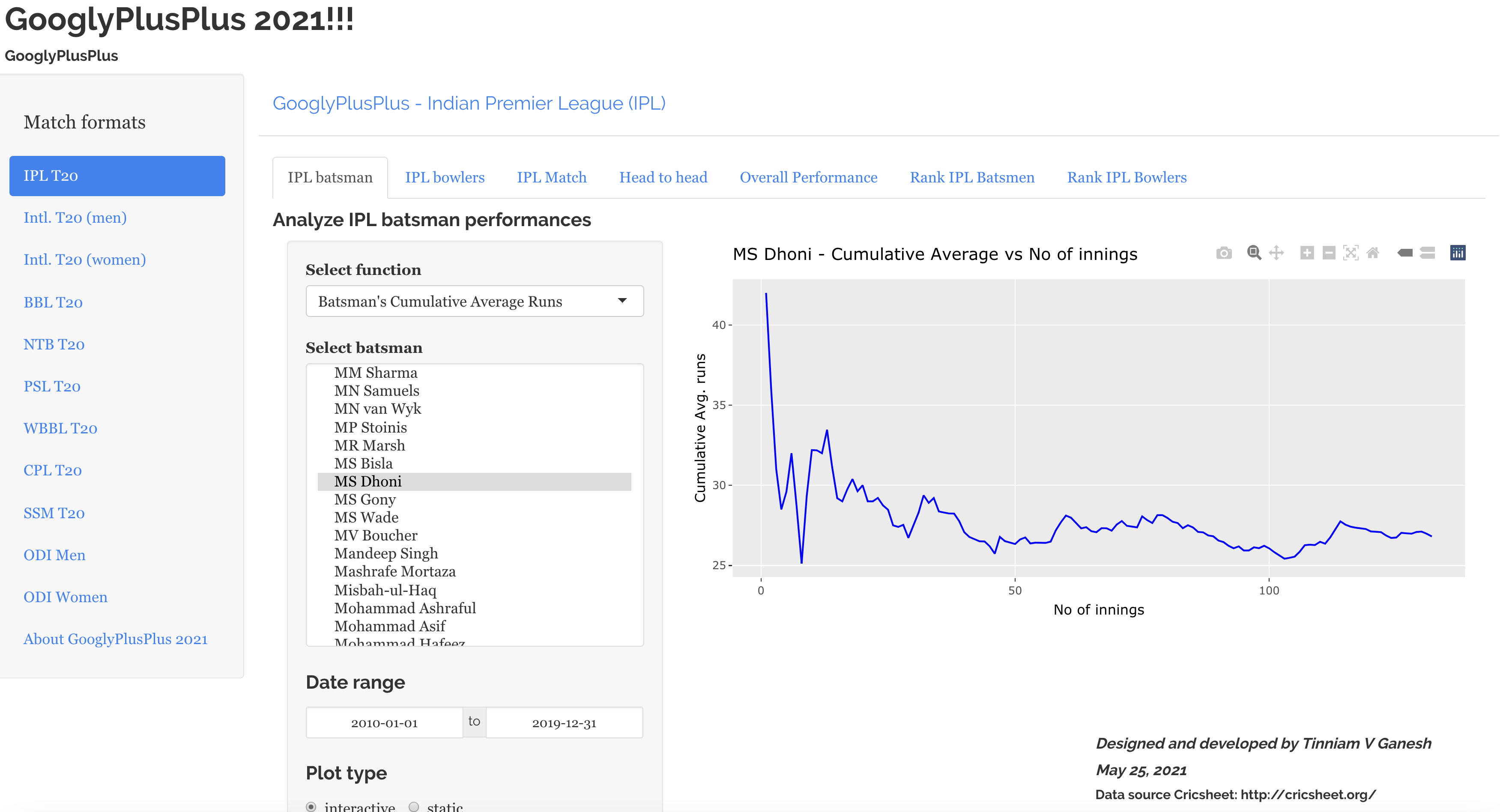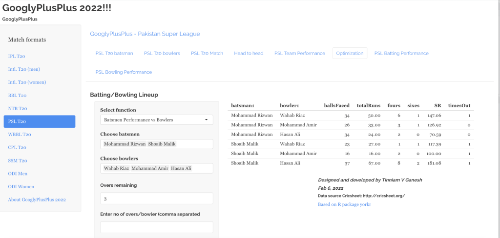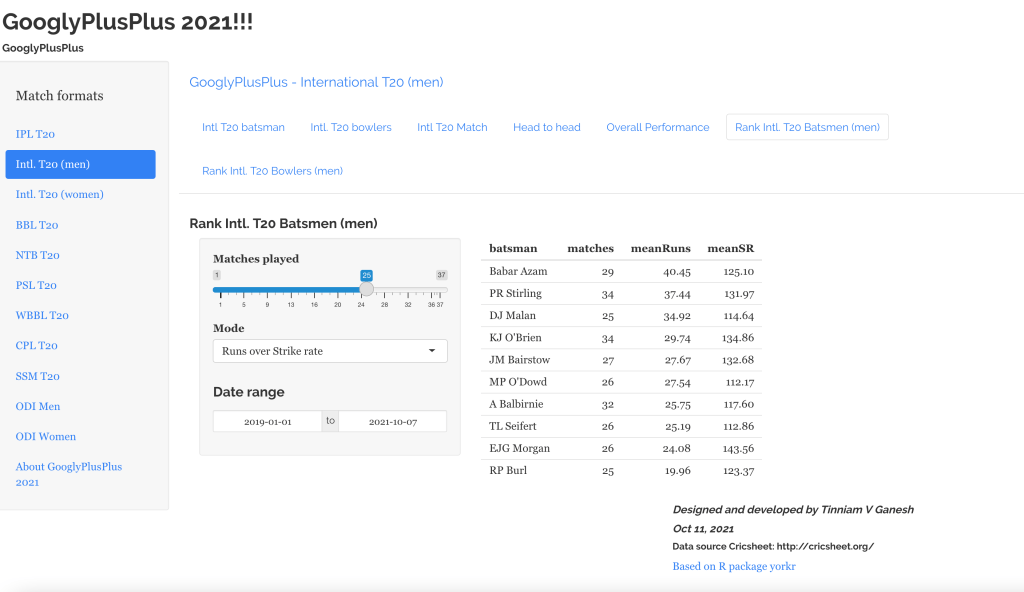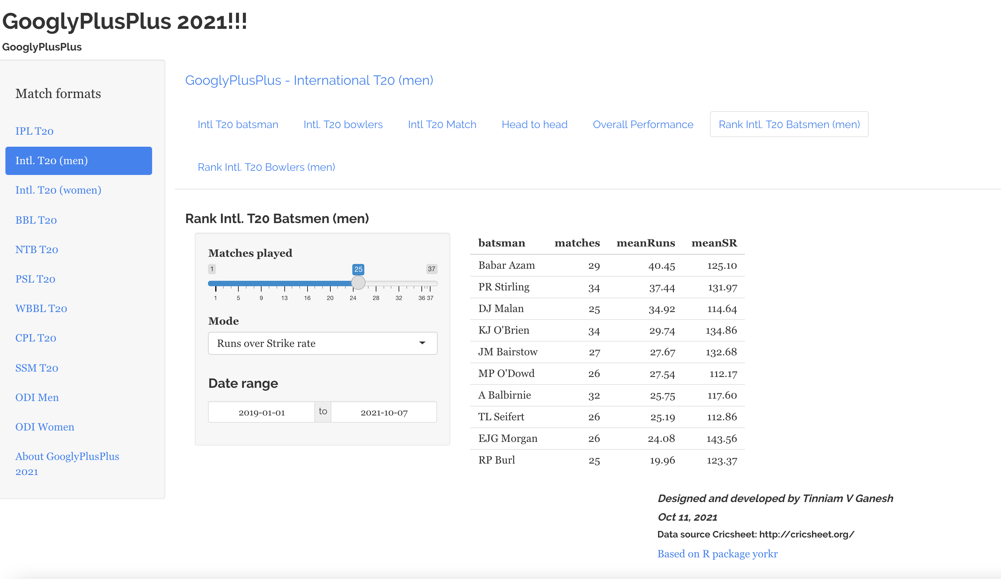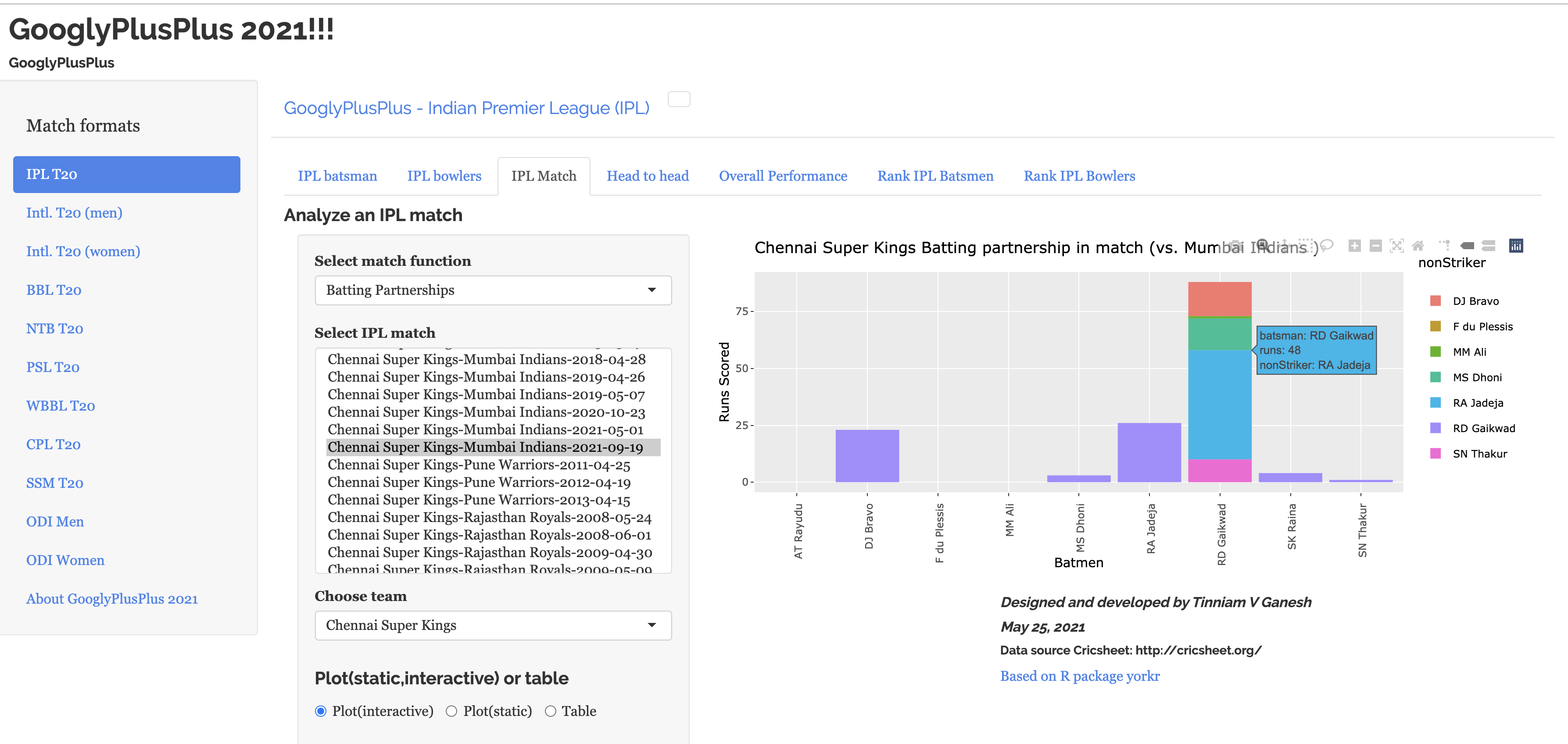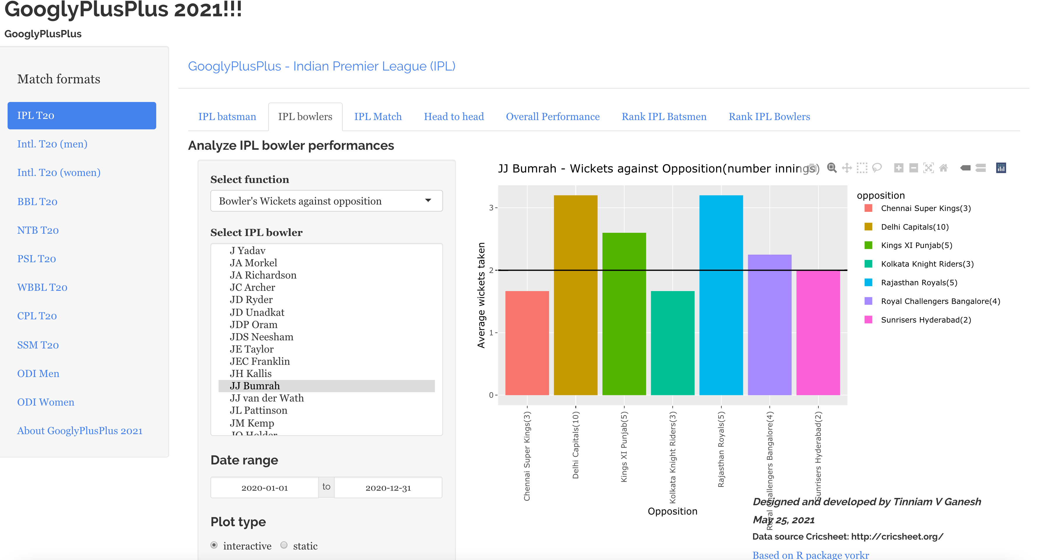 Note: The data for GooglyPlusPlus comes from Cricsheet and the Shiny app is based on my R package yorkr