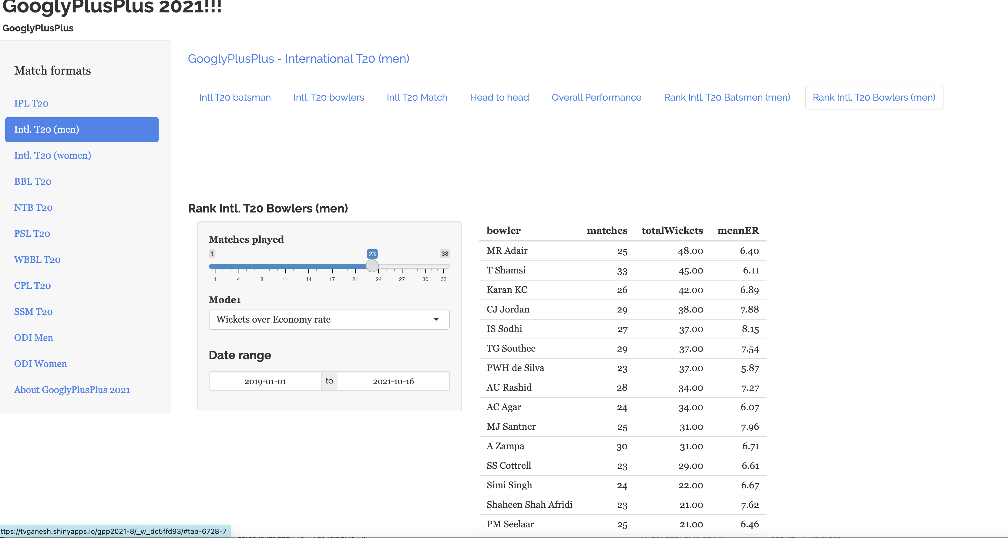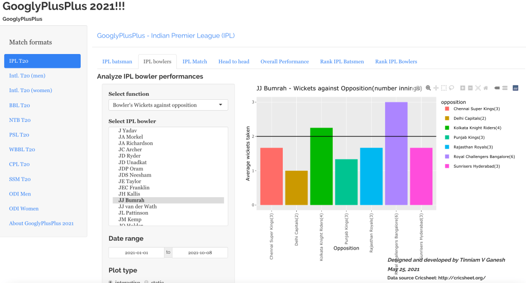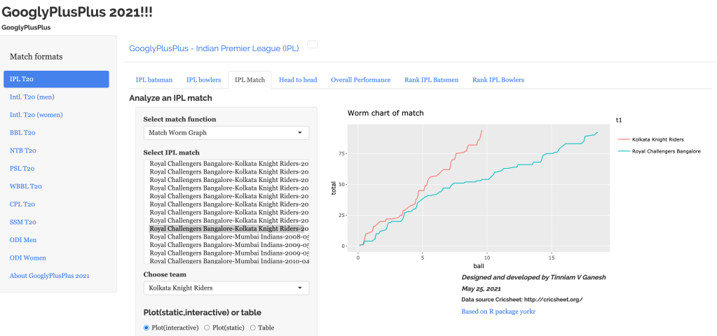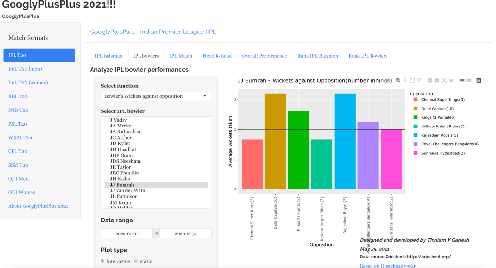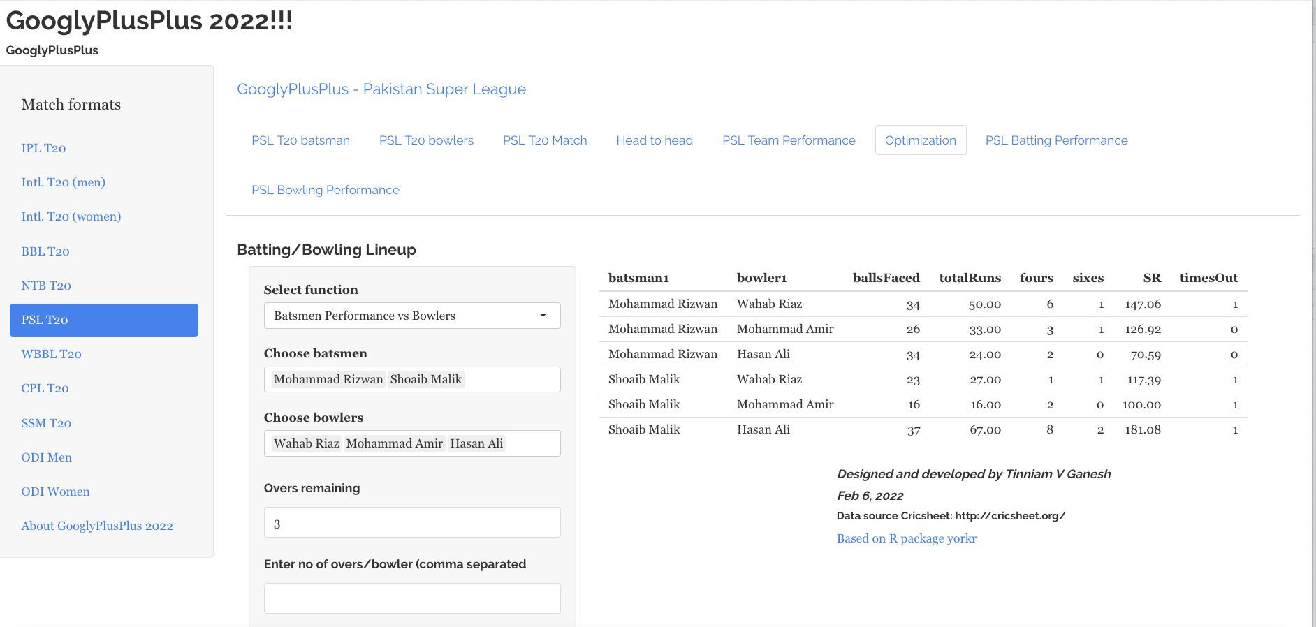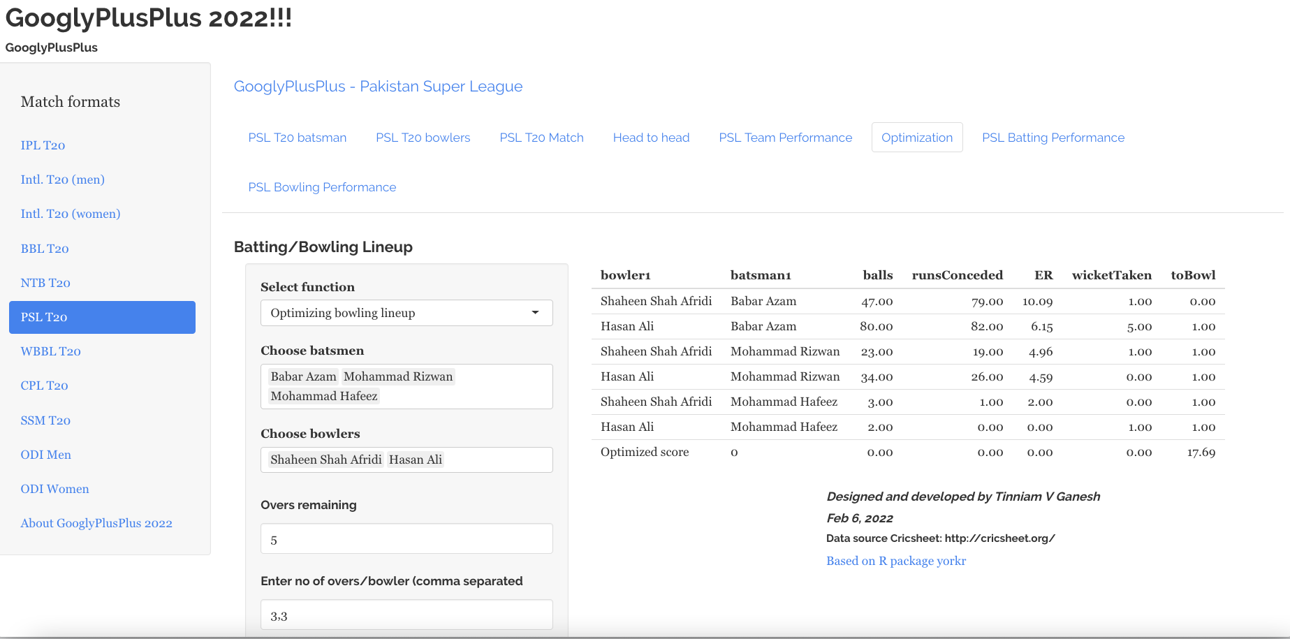 Note: The data for GooglyPlusPlus comes from Cricsheet and the Shiny app is based on my R package yorkr
