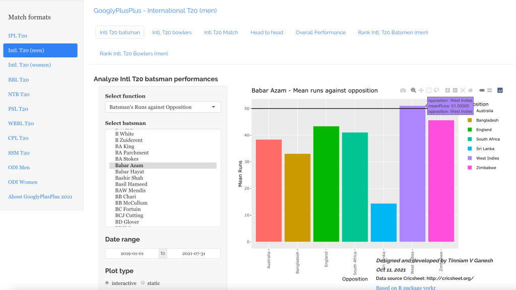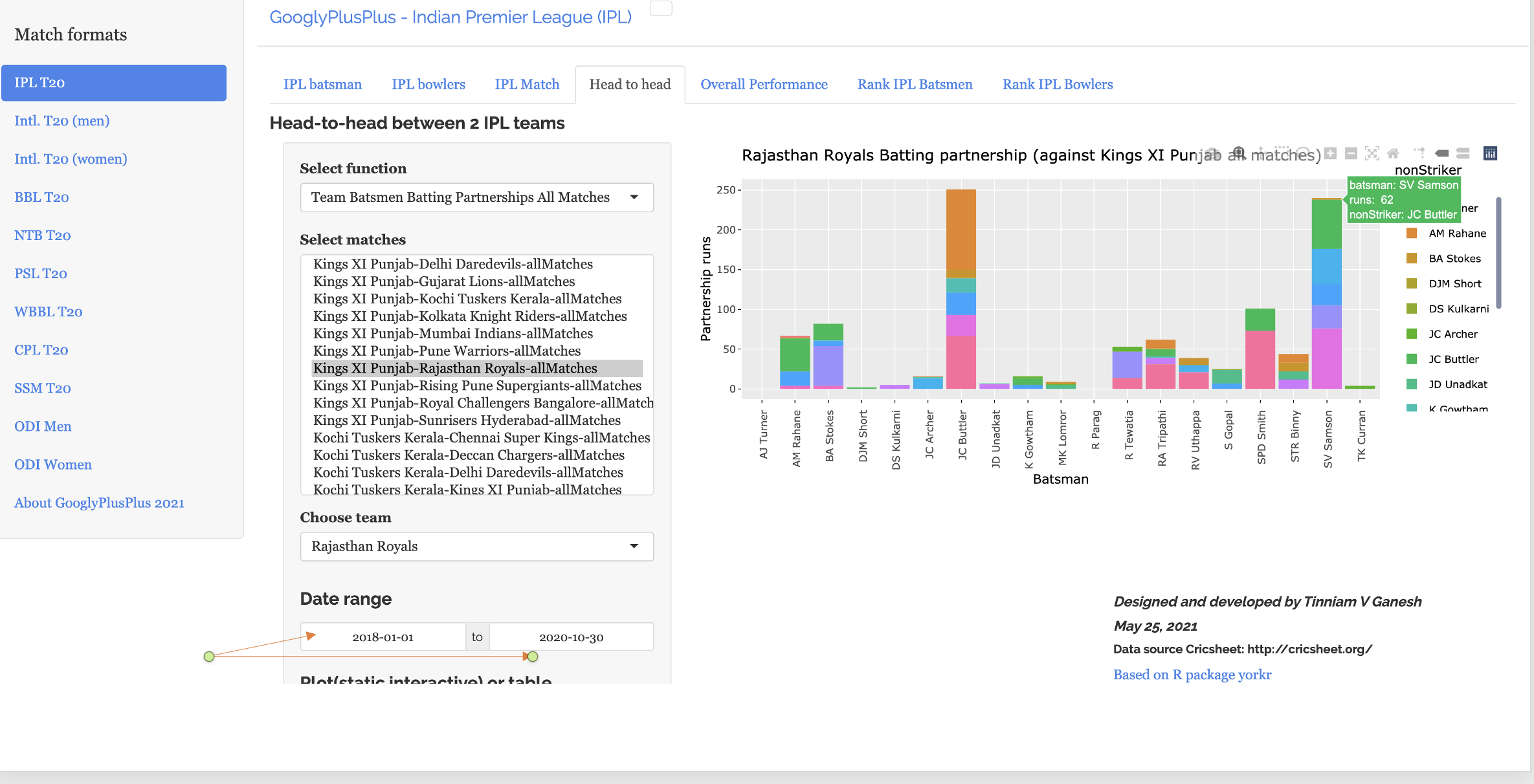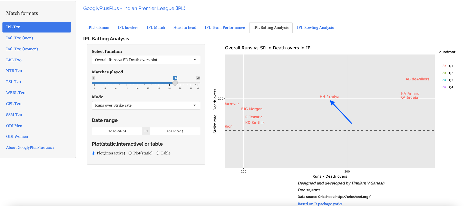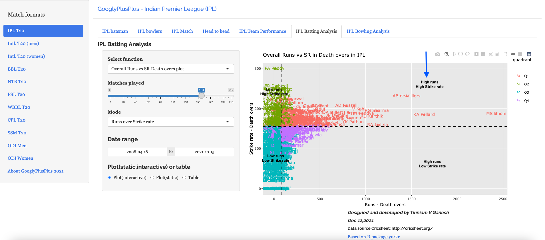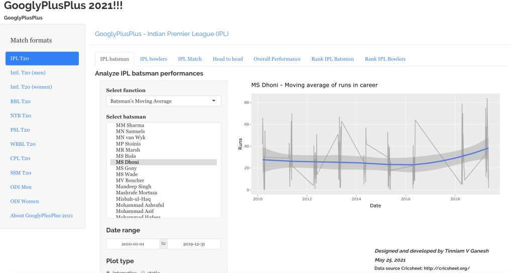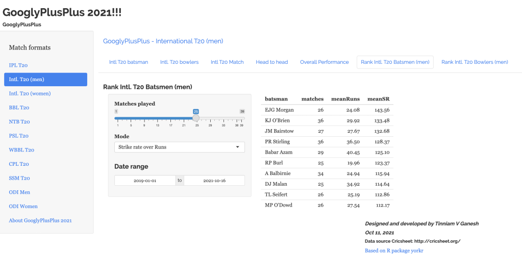Note: The data for GooglyPlusPlus comes from Cricsheet and the Shiny app is based on my R package yorkr