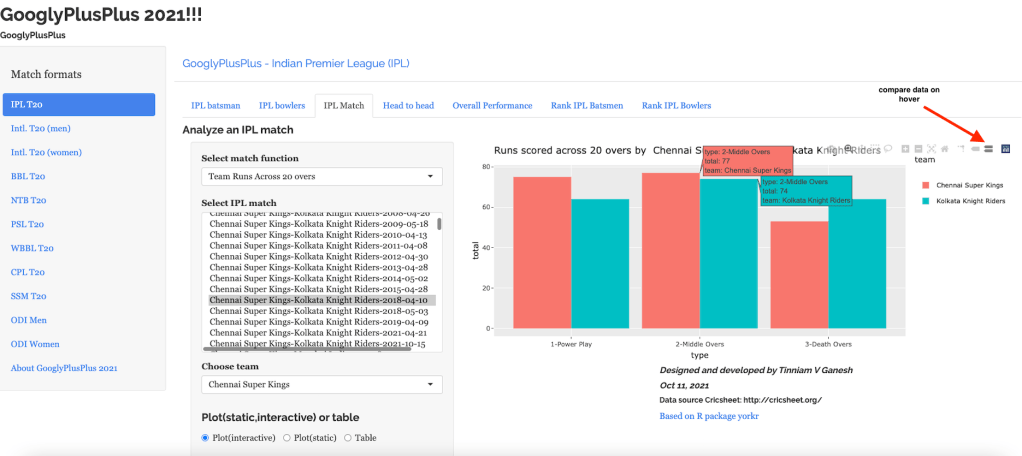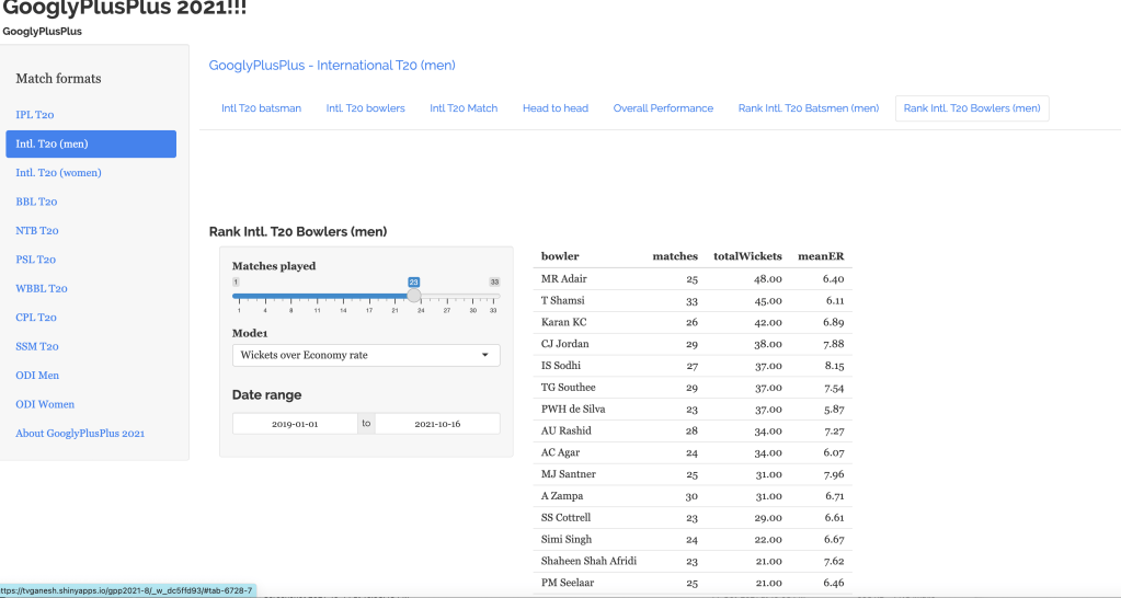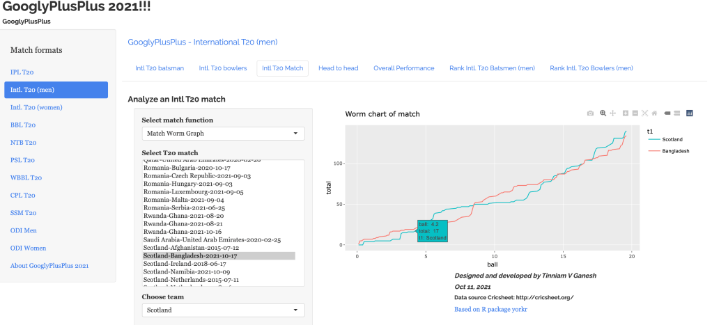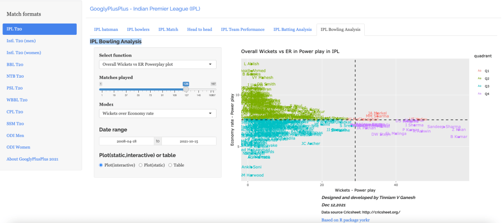 Besides, as before, GooglyPlusPlus will also include the usual near real-time analytics with the Shiny app being automatically updated with the previous day’s match data.