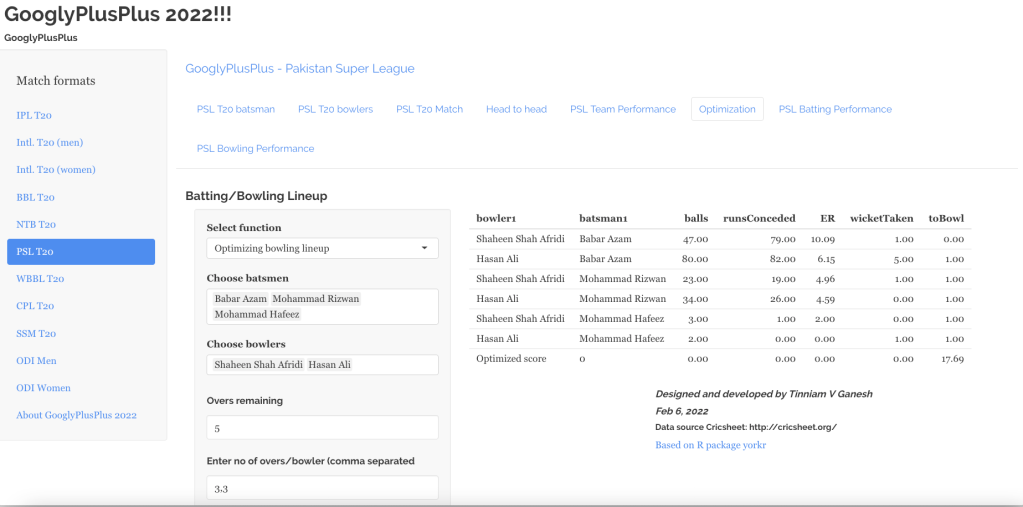 GooglyPlusPlus has been also updated with all the latest T20 league’s match data. It includes data from BBL 2022, NTB 2022, CPL 2022, PSL 2023, ICC T20 2022 and now IPL 2023.