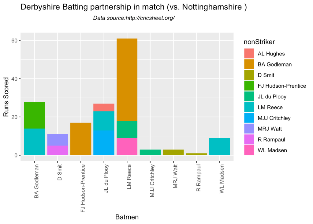 The plot below shows Fakhar Zaman (Lahore Qalanders) partnerships with other teammates in all matches in PSL.