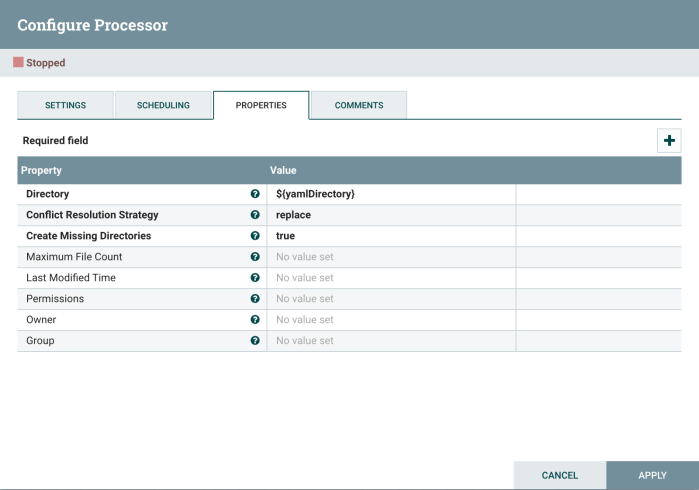 This processor stores the YAML files in a predetermined folder, so that the data can be picked up by the 2nd Process Group for processing