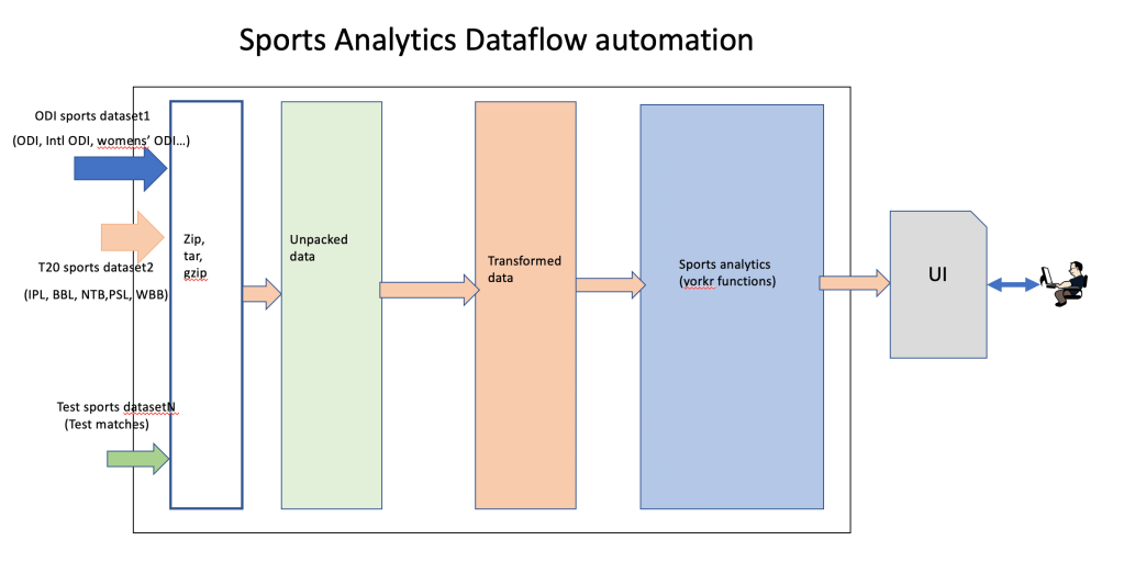 This post demonstrated an end-to-end pipeline with Apache NiFi and R package yorkr. You can this pipeline and generated different analytics using the various functions of yorkr and display them on a dashboard.