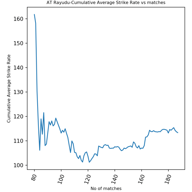 batsmanMeanStrikeRate("rahane.csv","Rahane")