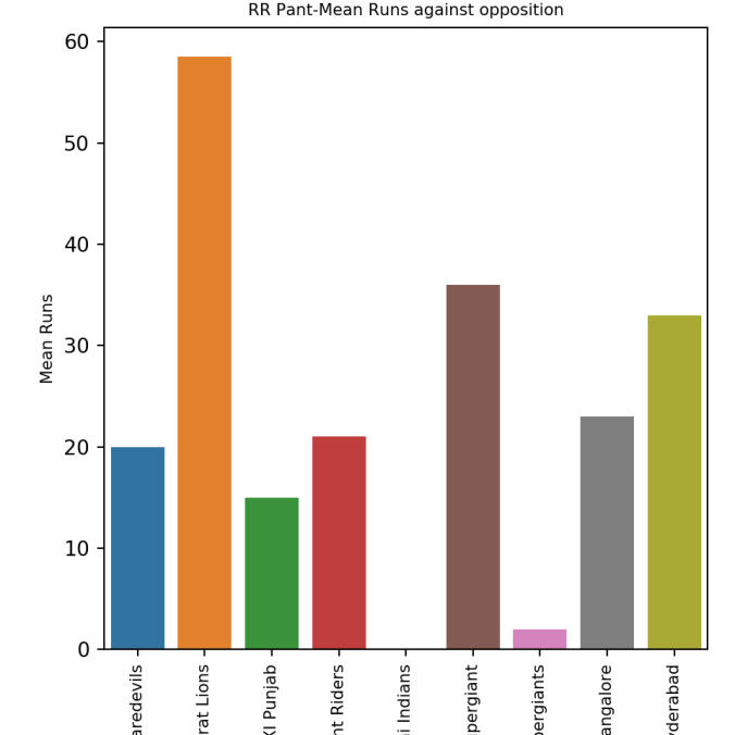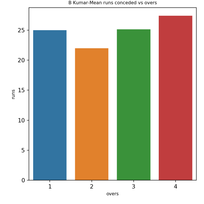 This plot shows a combined boxplot of the Runs ranges and a histog2ram of the Runs Frequency Kohli’s average is 48, while Rohit,Pujara is 40 with Rahane and Gill around 33.