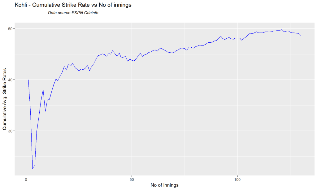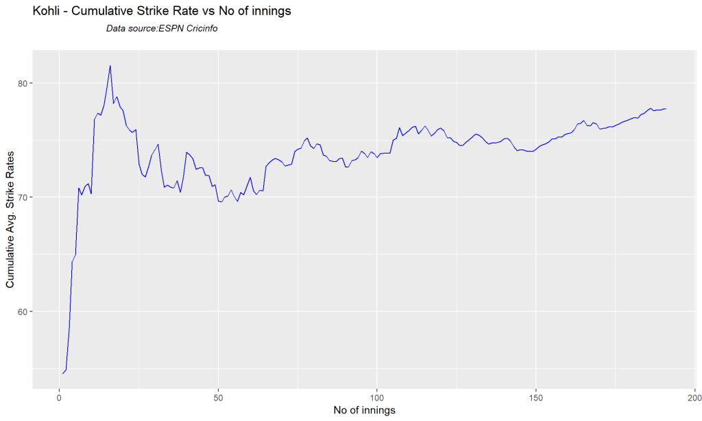 batsmanMeanStrikeRate("kohliTest.csv","Kohli")