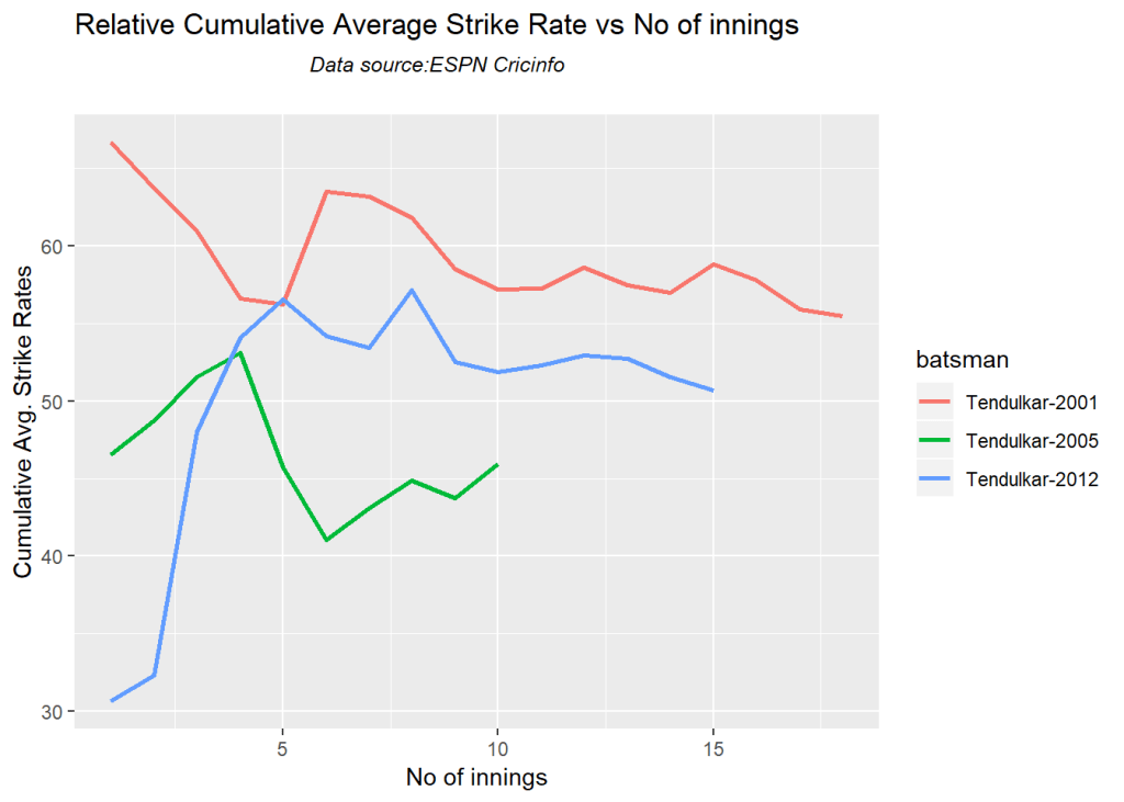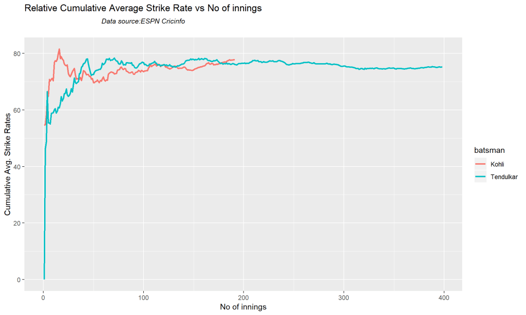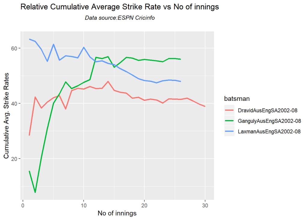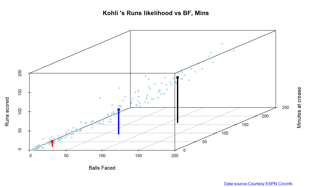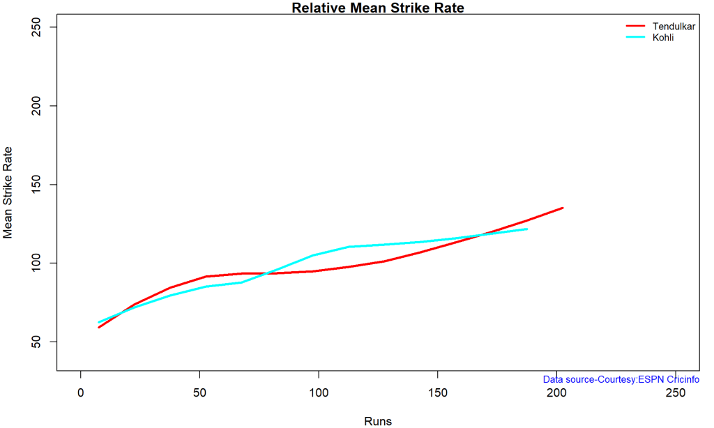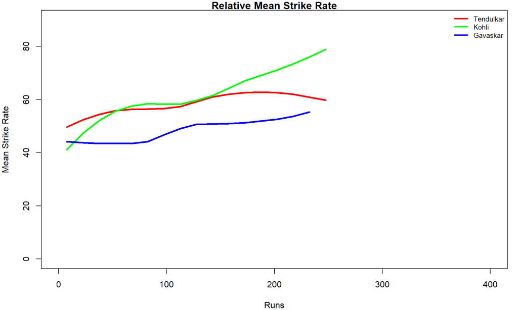 Kohli’s strike rate increases with increasing runs, while Gill’s seems to drop. So it is with Pujara & Rahane