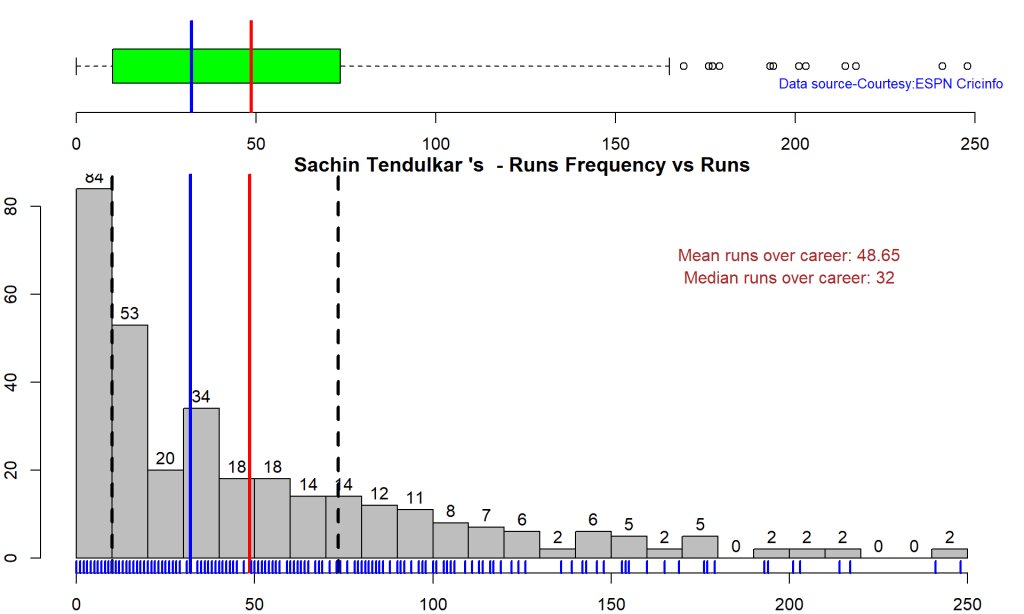 batsmanPerfBoxHist("rohitTest.csv","Rohit")