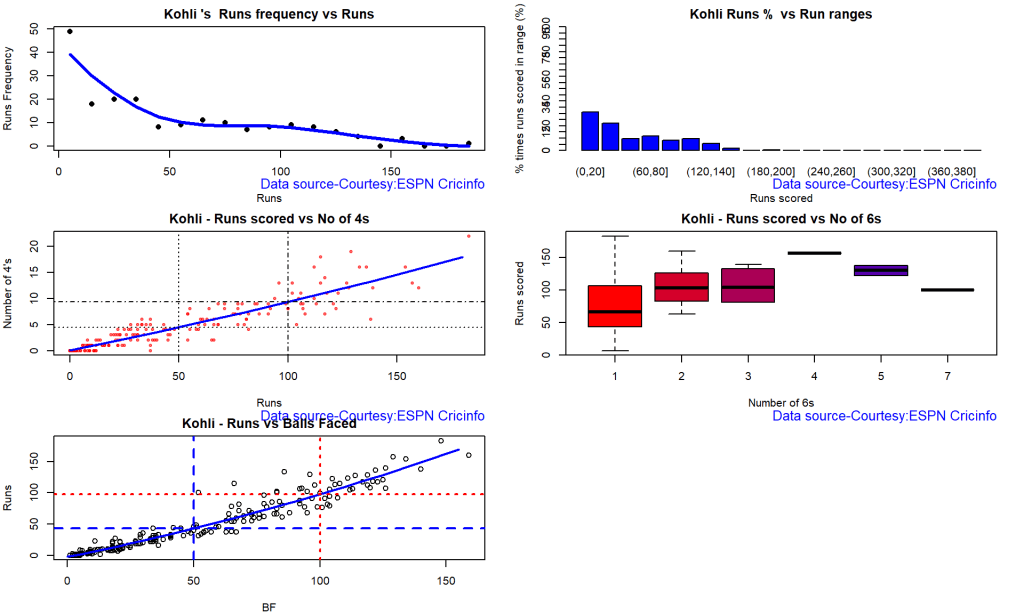 batsmanPerfBoxHist("kohliTest.csv","Kohli")