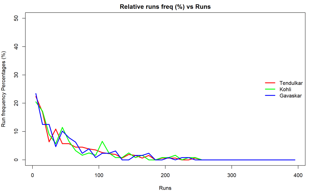 batsmanRunsFreqPerf("kohliTest.csv","Kohli")