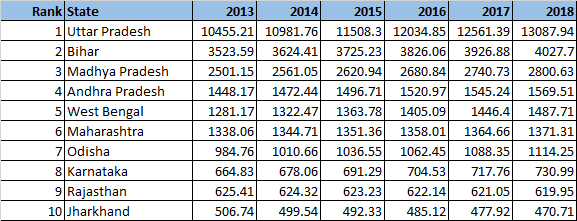 The tables below are based on the projected incidence of crimes under various categories assuming that these states maintain their torrid crime rate. A cursory look at the tables below clearly indicate the Uttar Pradesh is the undisputed heavy weight champion in 4 of 5 categories shown. Maharashtra and Andhra Pradesh take 2nd and 3rd ranks in the total crimes against women and are significant contenders in other categories too.