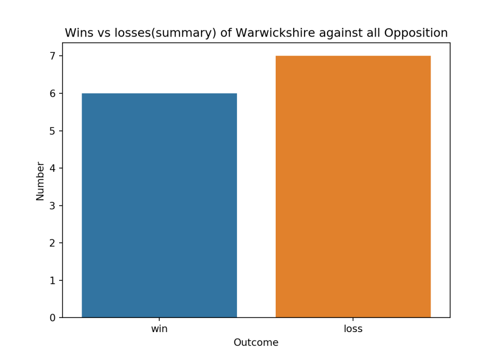 yka.plotWinLossByTeamAllOpposition(w_matches,'Warwickshire')