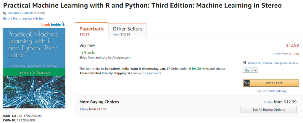 1. Practical machine with R and Python: Third Edition – Machine Learning in Stereo(Paperback-$12.99)