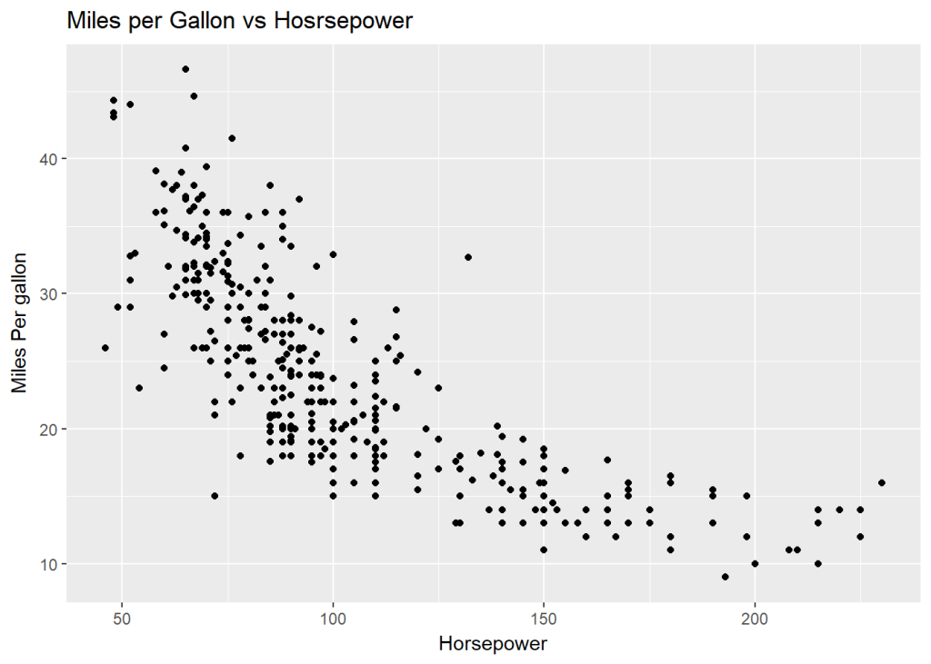 library(dplyr)library(ggplot2)source('RFunctions-1.R')# Read the datadf=read.csv("auto_mpg.csv",stringsAsFactors=FALSE)# Data from UCIdf1<-as.data.frame(sapply(df,as.numeric))#Select specific columnsdf2<-df1%>%dplyr::select(cylinder,displacement, horsepower,weight, acceleration, year,mpg)auto<-df2[complete.cases(df2),]# Fit a 4th degree polynomialfit=lm(mpg~poly(horsepower,4),data=auto)#Display a summary of fitsummary(fit)
