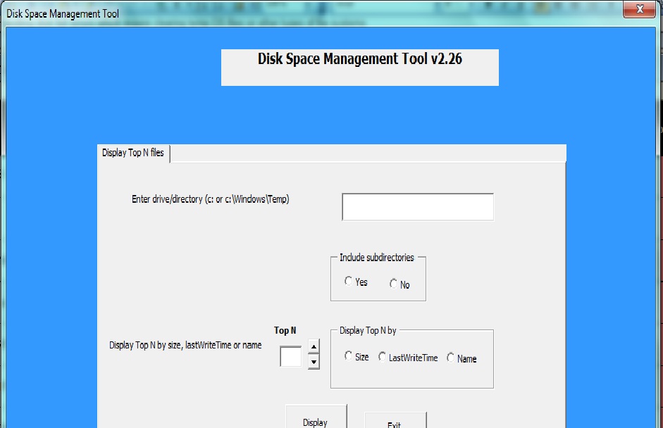 strQuery1 = “SELECT TOP ” & topN & ” Name, Size INTO c:\tes\filesize.gif FROM ” & files & ” WHERE NOT Attributes LIKE ‘%D%’ AND NOT ATTRIBUTES LIKE ‘%H%’ ORDER BY Size DESC ”