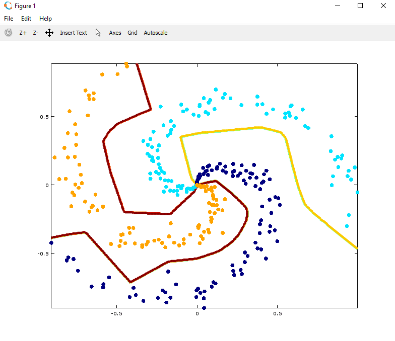 4. Part 4 – This part looks at multi-class classification, and I derive the Jacobian of a Softmax function and implement a simple problem to perform multi-class classification.