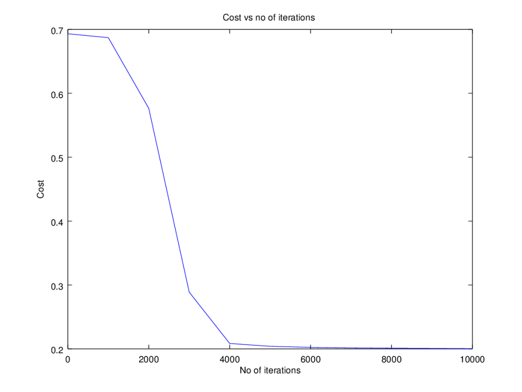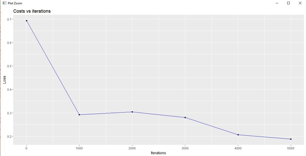 ggtitle("Costs vs iterations") + xlab("No of iterations") + ylab("Cost")