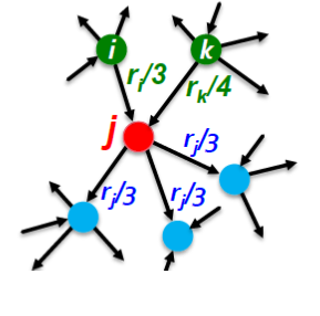 - If a page ‘j’ with page rank rj has n out-links each link gets rj/n votes