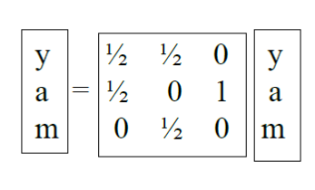 This will eventually converge at ry=2/5 ra=2/5 and rm =1/5