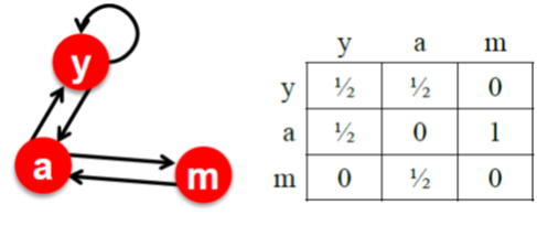 To start the page rank of ra=ry=rm = 1/3 so that the sum ∑ri =1