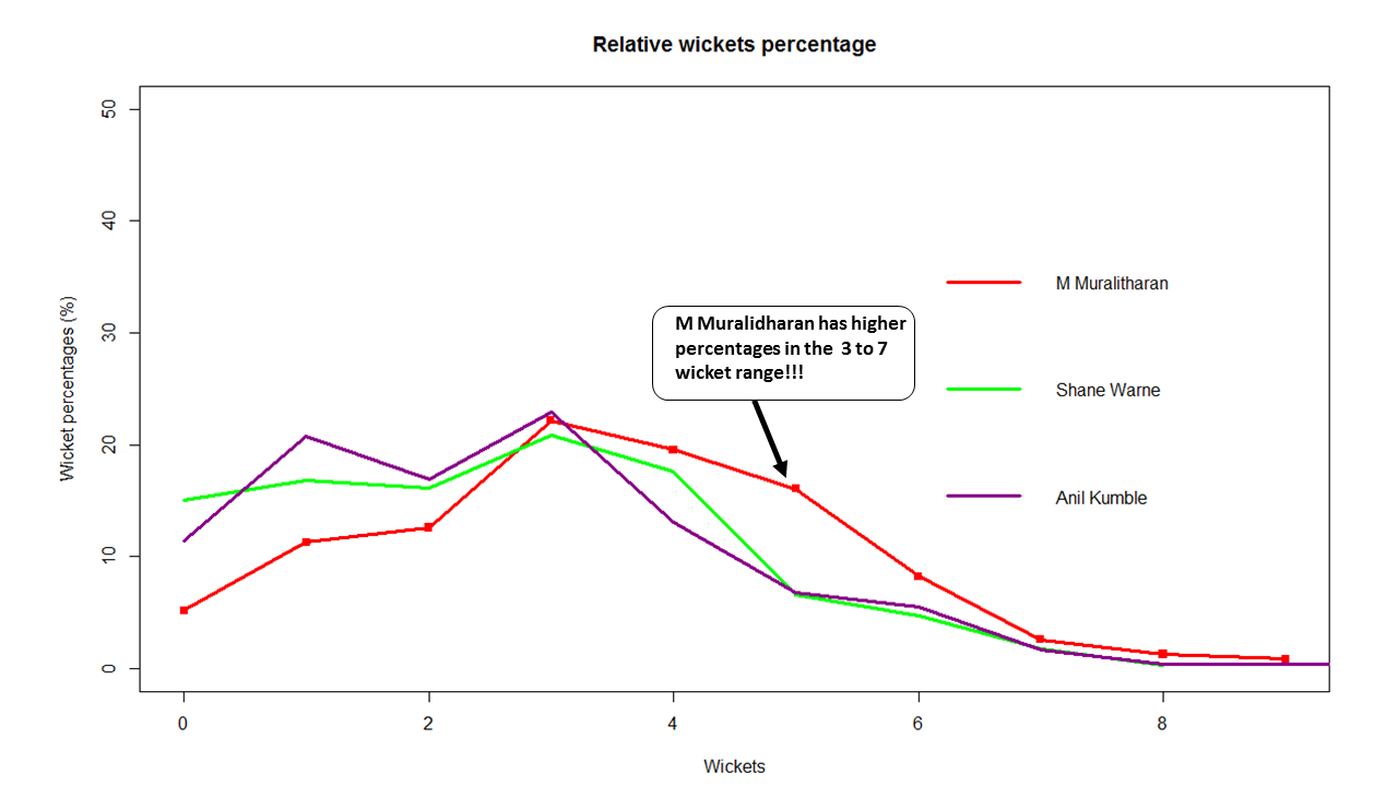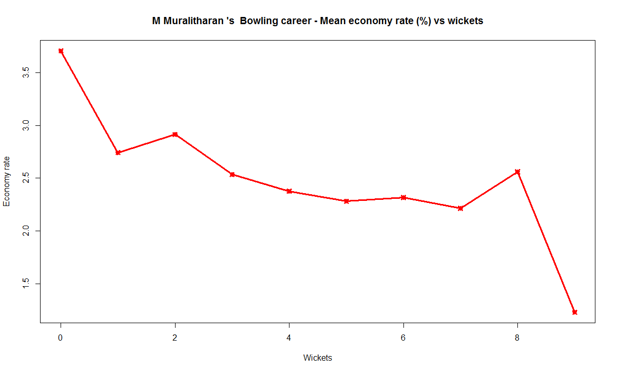 The plots below provide the wickets taken and the runs conceded by the bowler in the match