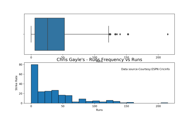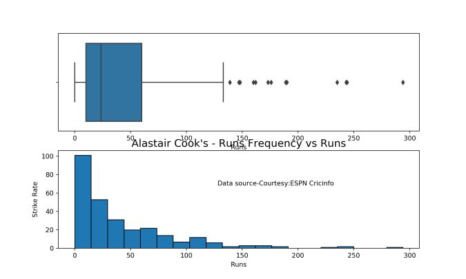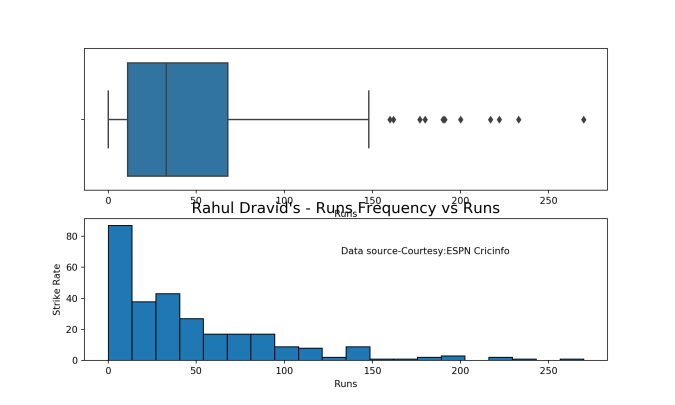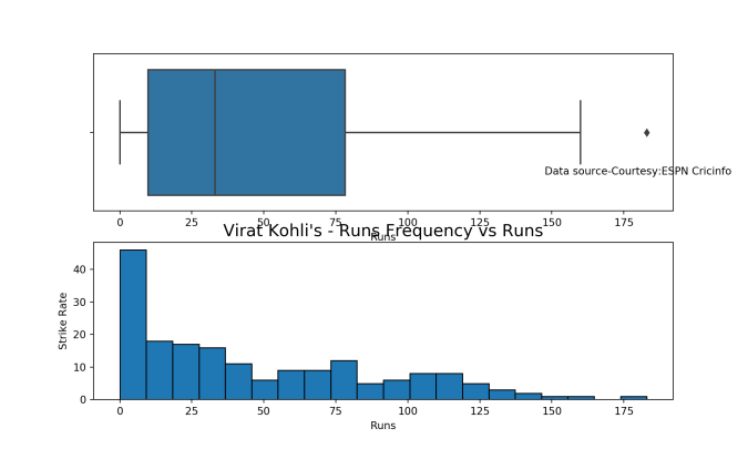 batsmanPerfBoxHist("kohliTest.csv","Kohli")