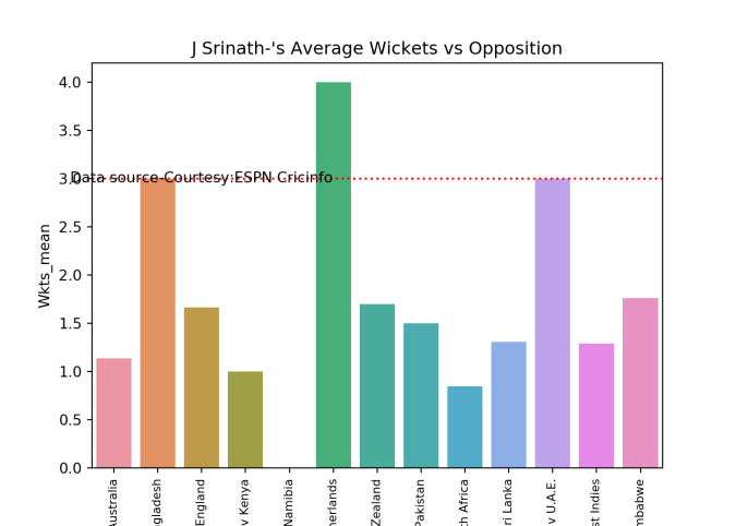 bowlerAvgWktsOpposition("cumminsTest.csv","Cummins")