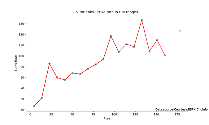 batsmanMeanStrikeRate("kohliTest.csv","Kohli")