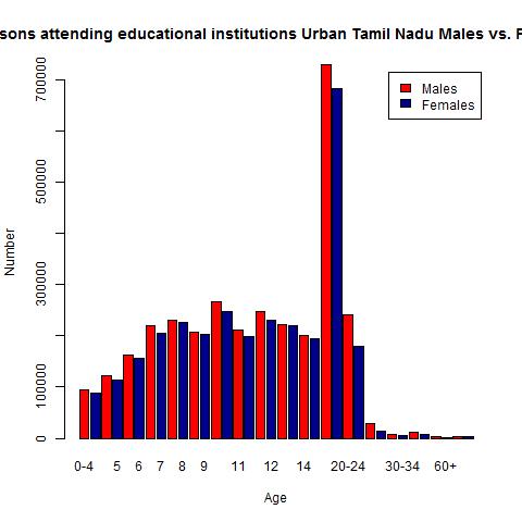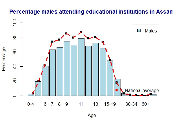 Males (%) attending education institutions = (Males attending educational institutions * 100)/ Total males