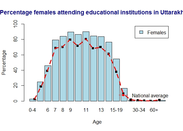 Females (%) attending education institutions = (Females attending educational institutions * 100)/ Total Females